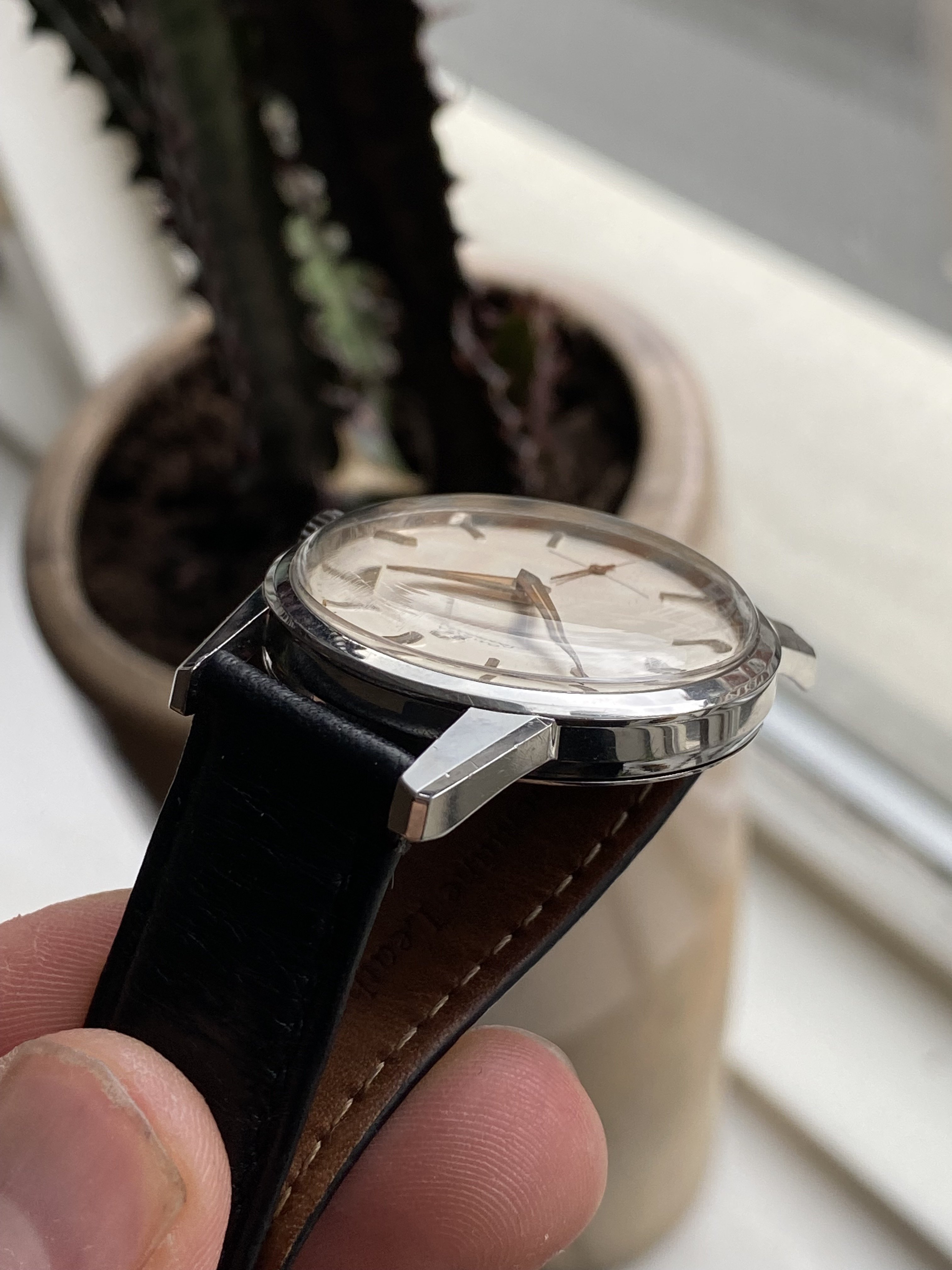 Dial: The crisp off white dial with silver indices and dauphine hands is stunning and has a very light patina that is only visible from certain angles. The lume on the hands as patinated to a lovely orange.
