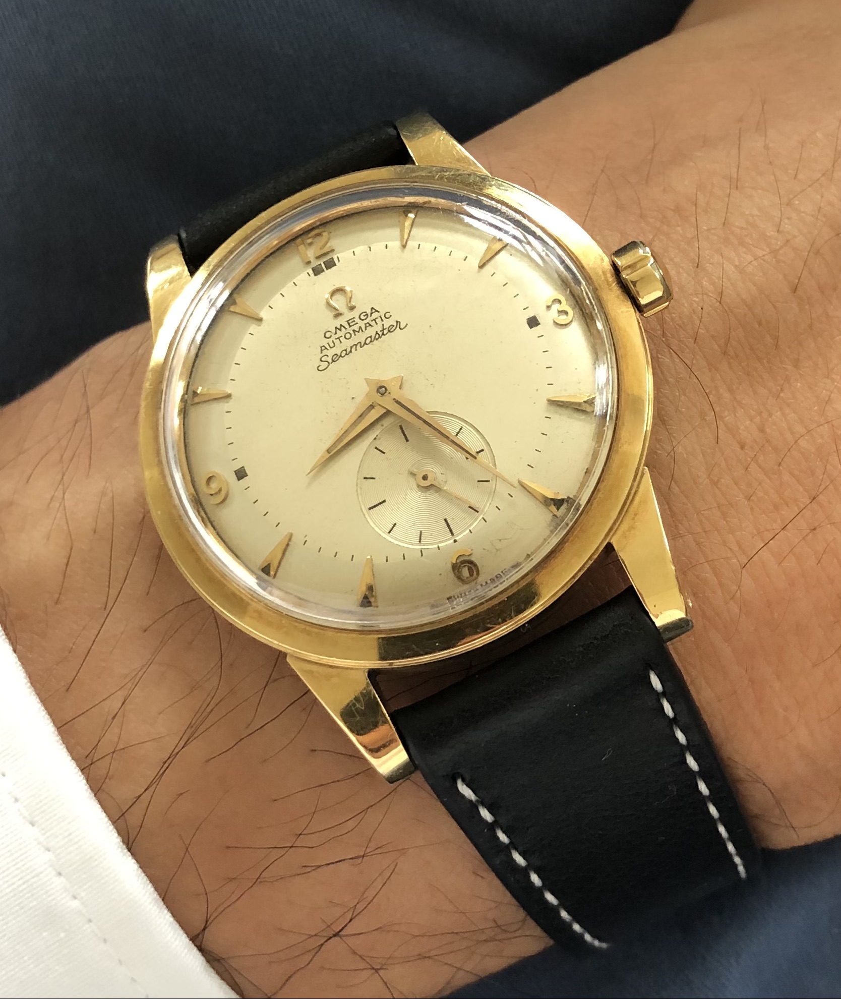 I have the first major incoming of the new year and will have to let go of some watches that don't get enough wrist time. Up for sale is this nice jumbo Seamaster with an automatic bumper movement and housed in a 14k solid gold case. I bought this watch in late 2020 from a very respected OF member. Here is the original listing. Thanks OF for the space.