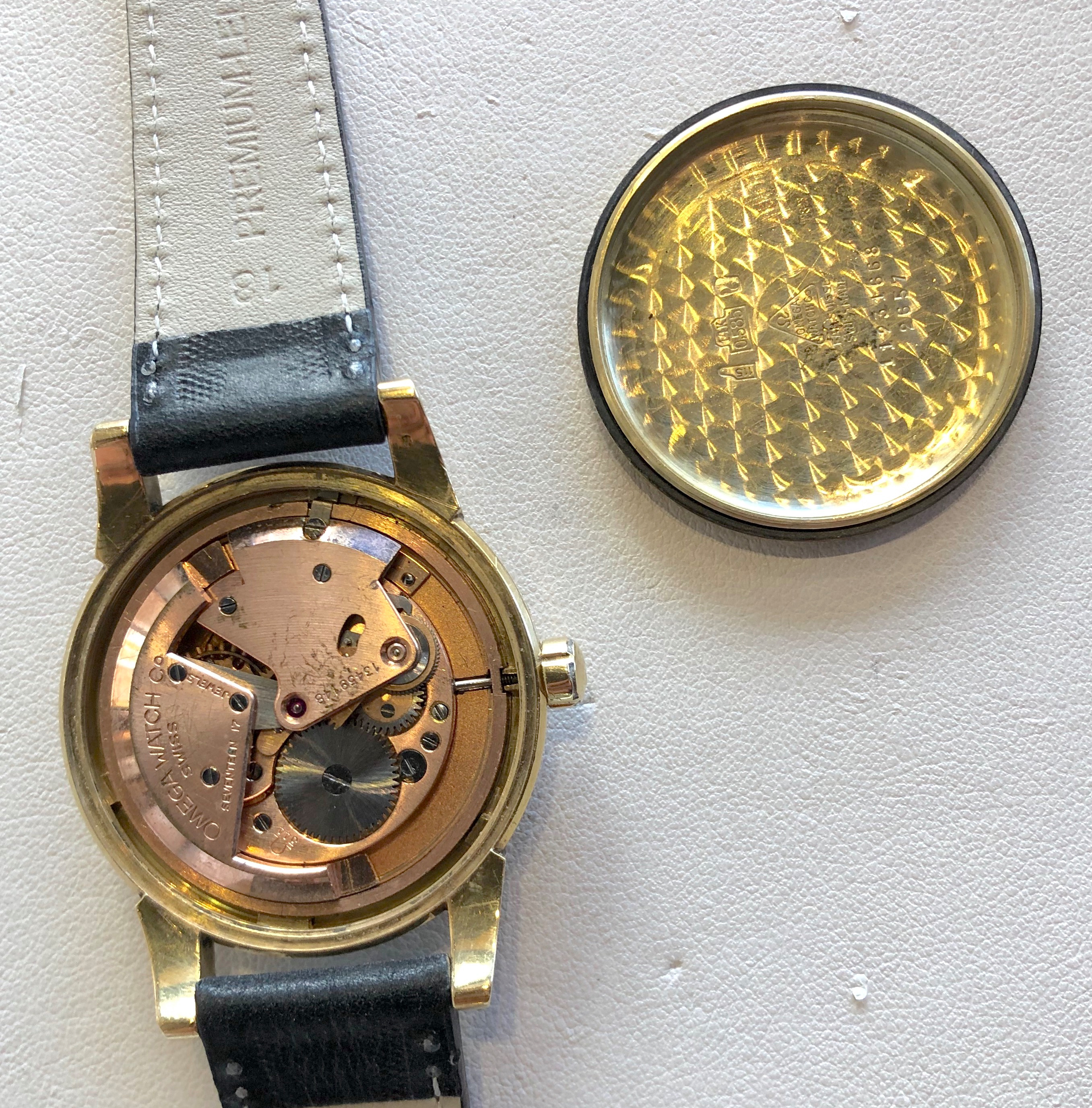Accessories: Black leather strap and original gold plated Omega buckle (14mm width) that came with the watch.