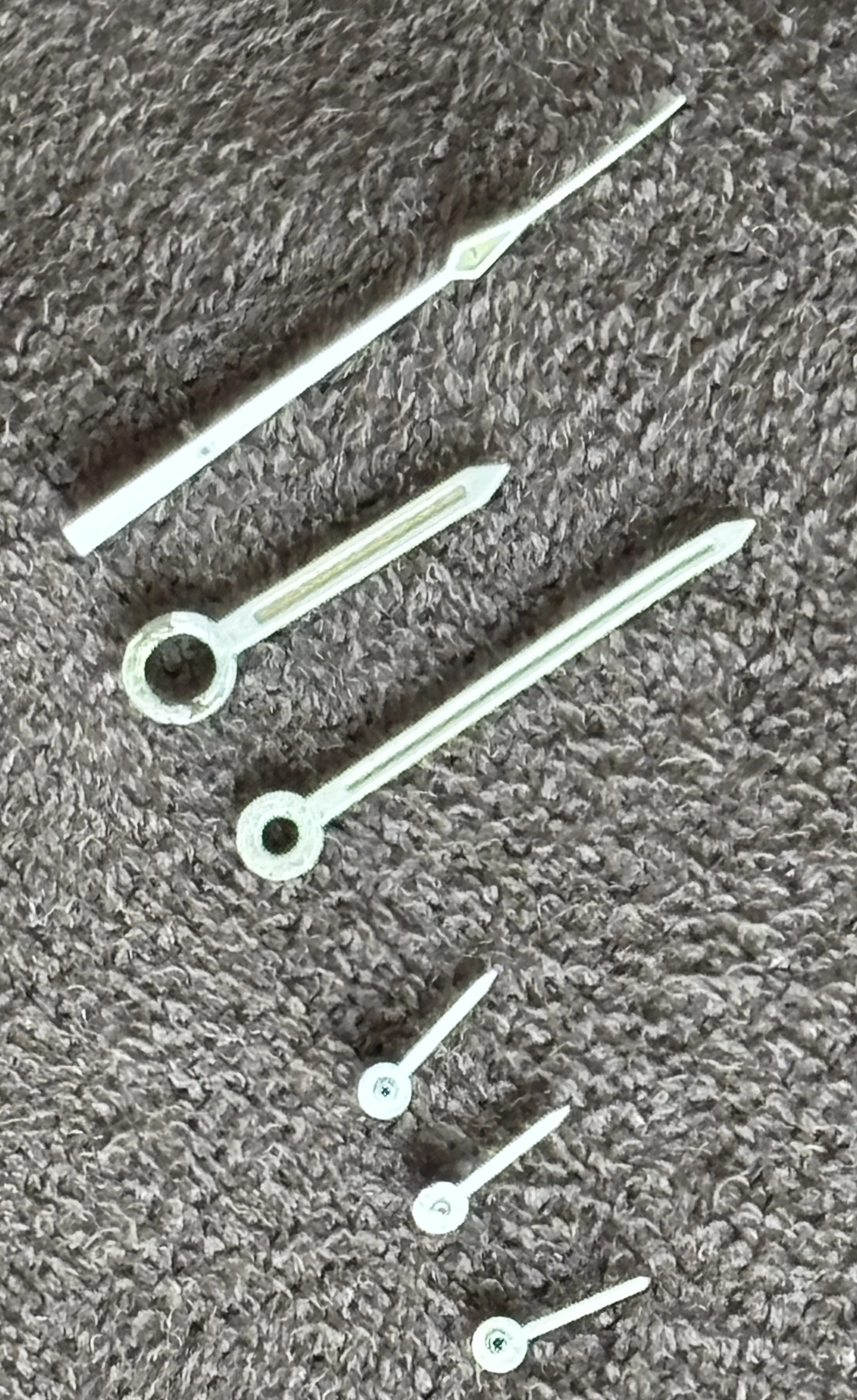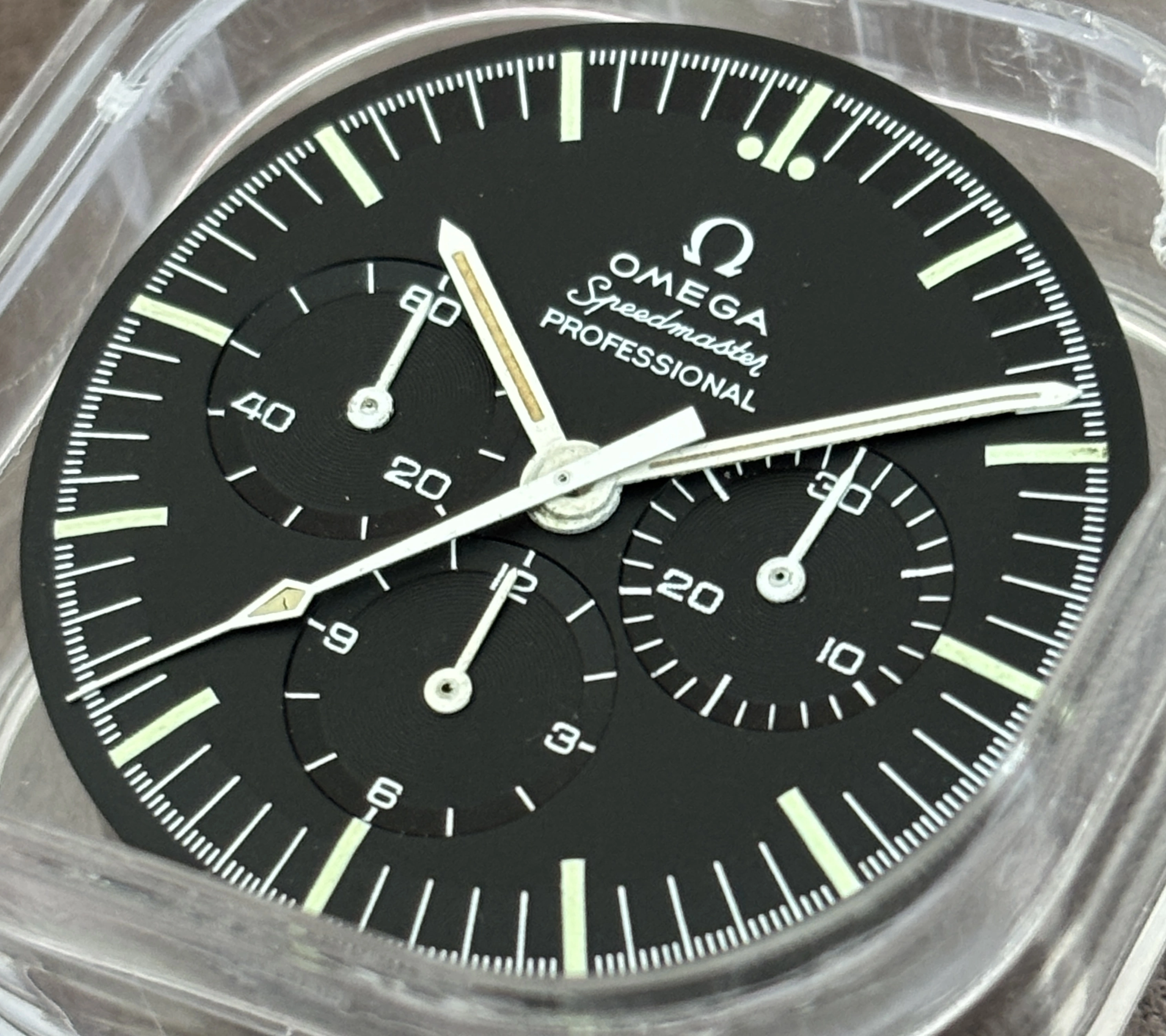 Complete set of tritium hands. this version of the flat second hand appeared with the caliber 861 until the ban on tritium in the 1990s. They can also be installed on the caliber 321 if that suits you.