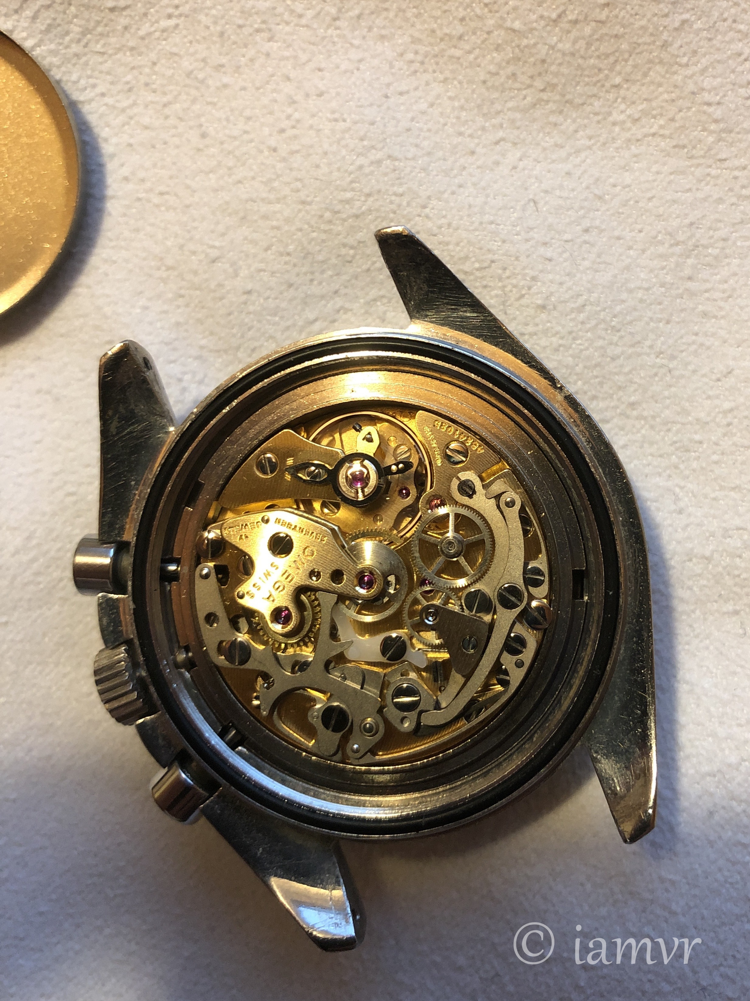 Movement: Manual caliber 861. I've checked the serial number 48241xxx against ilovemyspeedmaster.com and it yielded a production year of 1989. However, to be 100% sure of course an EotA would be required, which I never bothered to get. All functions work properly but I do not know the service history.