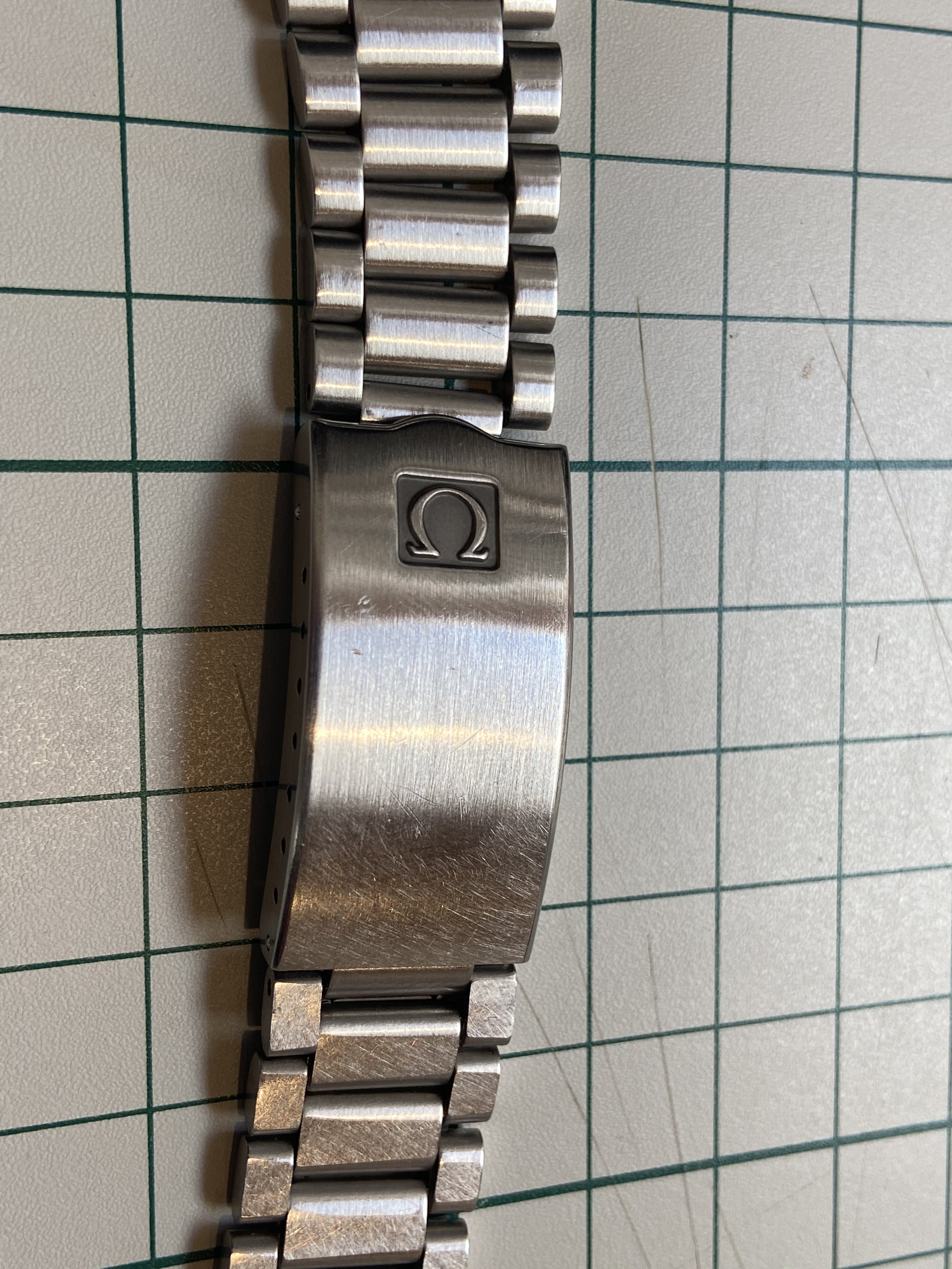 The final piece of my accessory clean out, a nice 1171/1 bracelet. MWO calls it the Type 10 bracelet. This is the earlier stamped version, not the laser etched. Falls between the trapezoid logo 1171 and the 1171/633. More info found in my favorite bracelet thread https://omegaforums.net/threads/fro...ge-seamaster-and-speedmaster-bracelets.45883/
