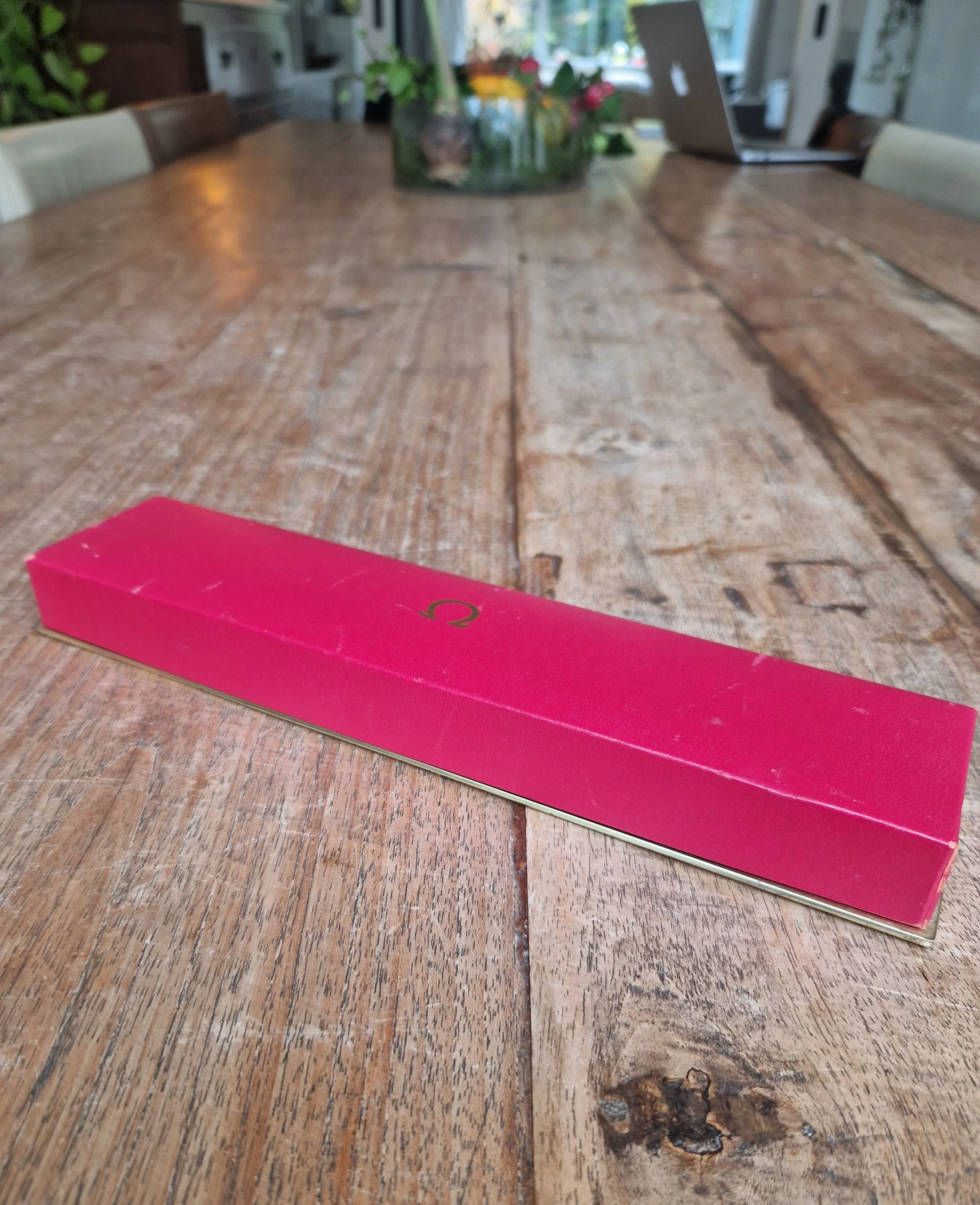 5. 1960’s Omega box (nr.2). This is the version with the removeable insert. Perfect condition. 14 x 5 x 2.5cm. €85