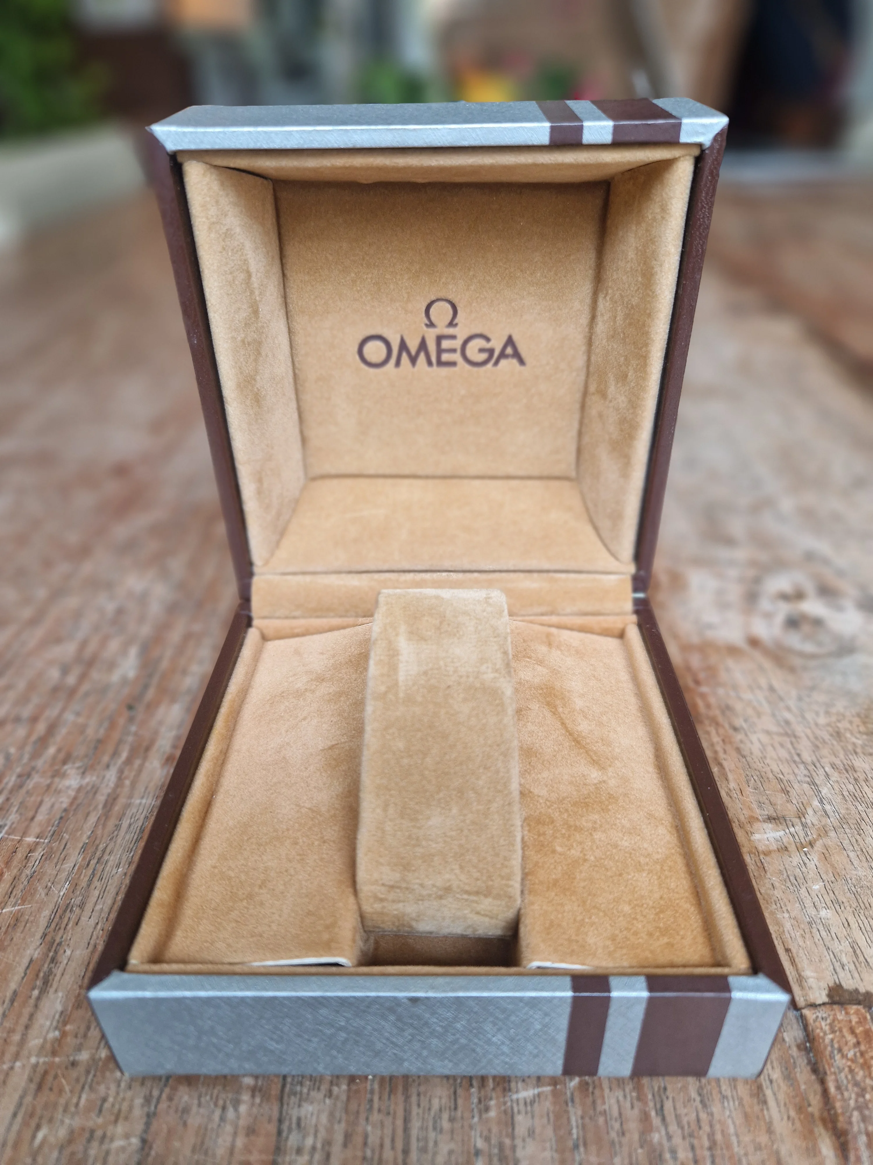 1. 1960’s Omega box . This is a large box 25 x 5.5 x 3 cm and as such is suitable for a whole range of men’s watches. Good condition with some small marks. (35mm watch in photo 4 is not included in the sale) €95