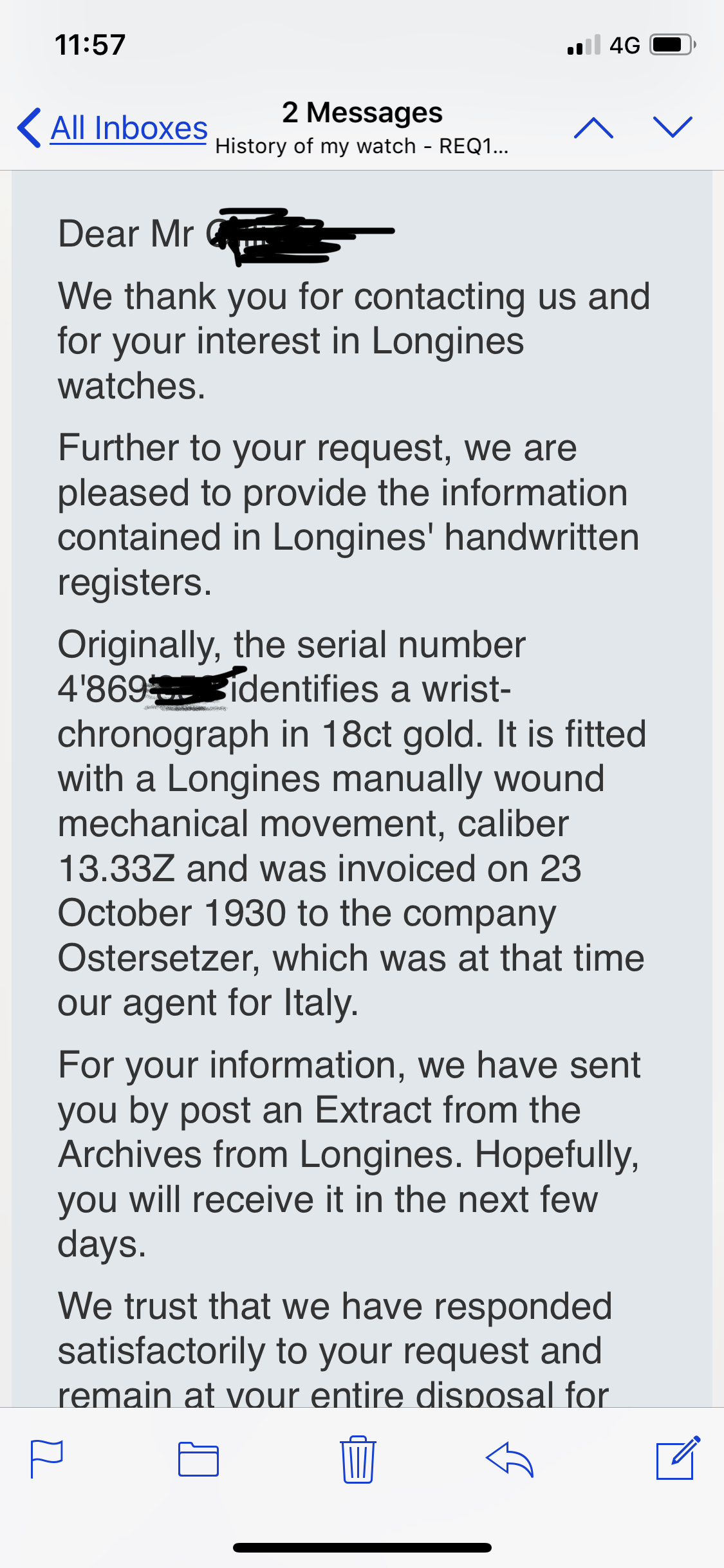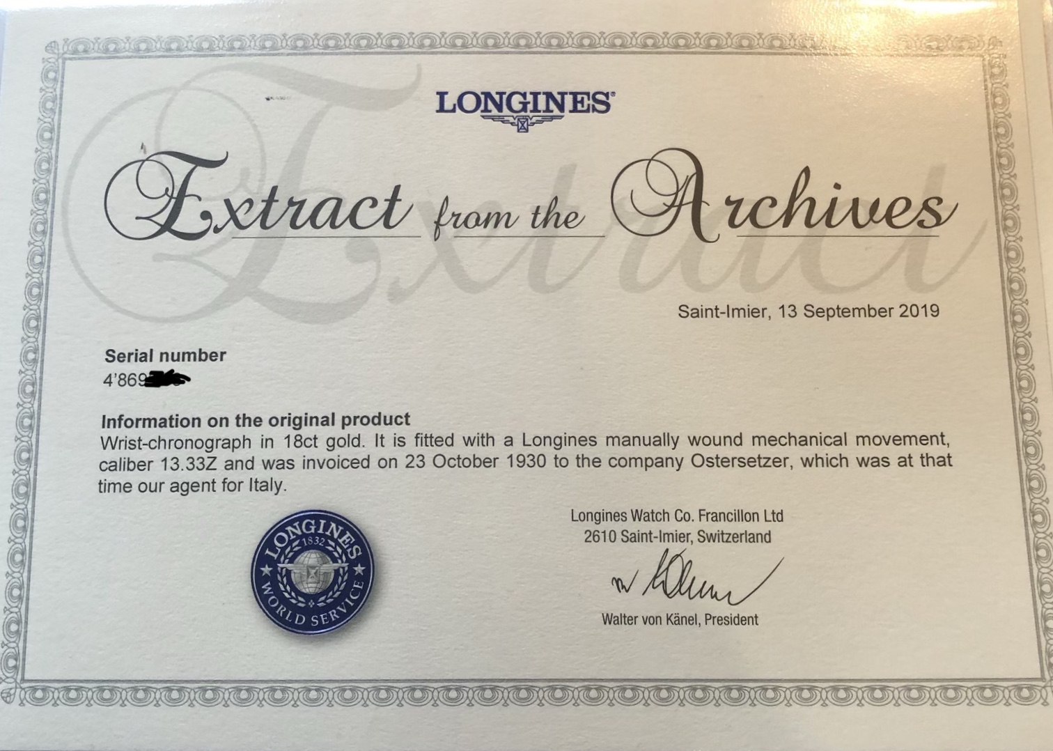 Taken in trade, I have asked Longines for an extract of records but in the meantime the most hi profile Longines guys I know, one of whom has written 1 or 2 books on the subject, tel me it is 100% correct, not including the modern strap and buckle.