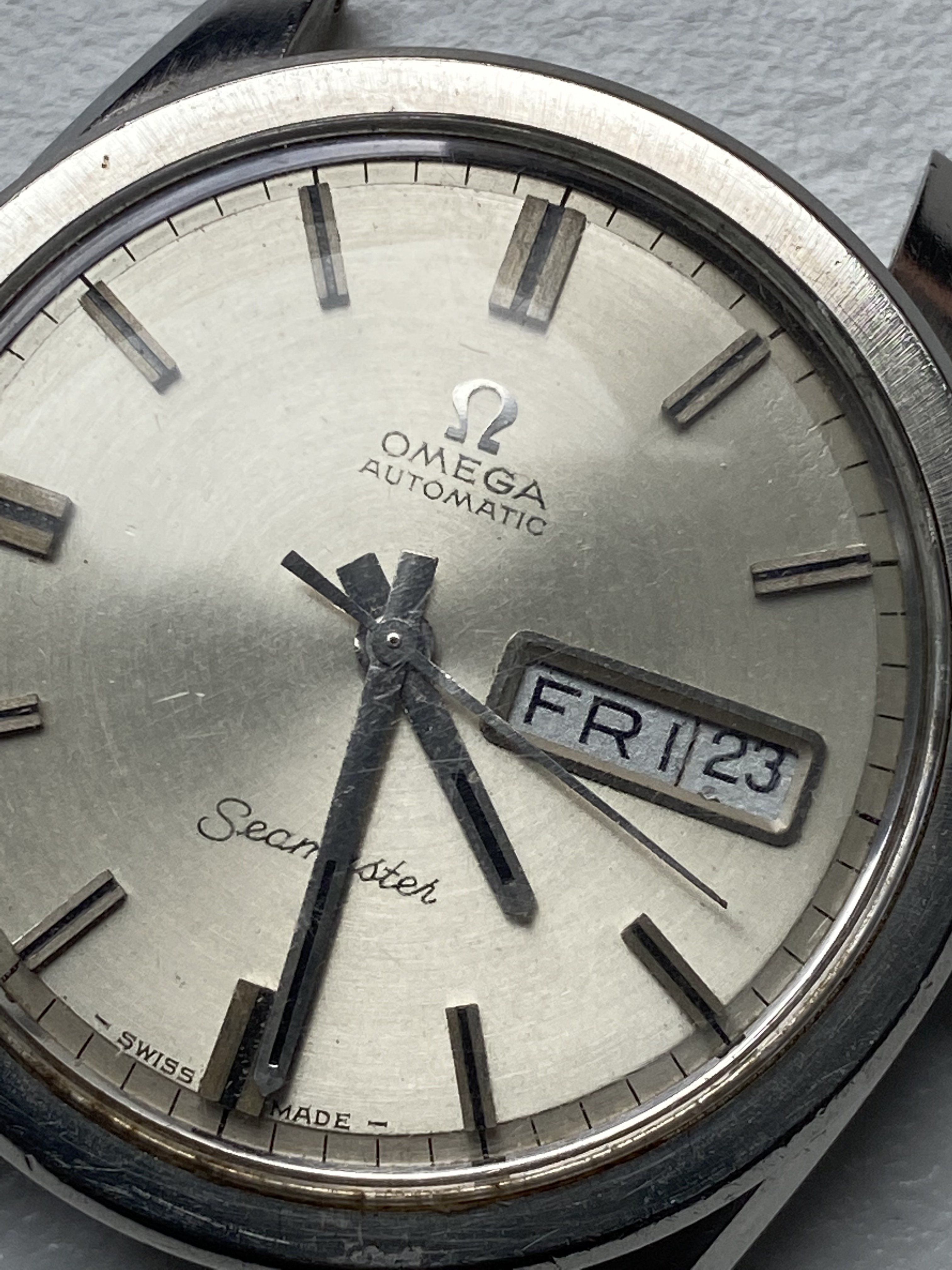 Offering for sale AS IS my vintage day date Seamasrer shown below. UNATTACHED bracelet/endlinks included. Although the package does show wear, and in particular scratches on the caseback, bracelet requires attention I don’t have currently, etc.