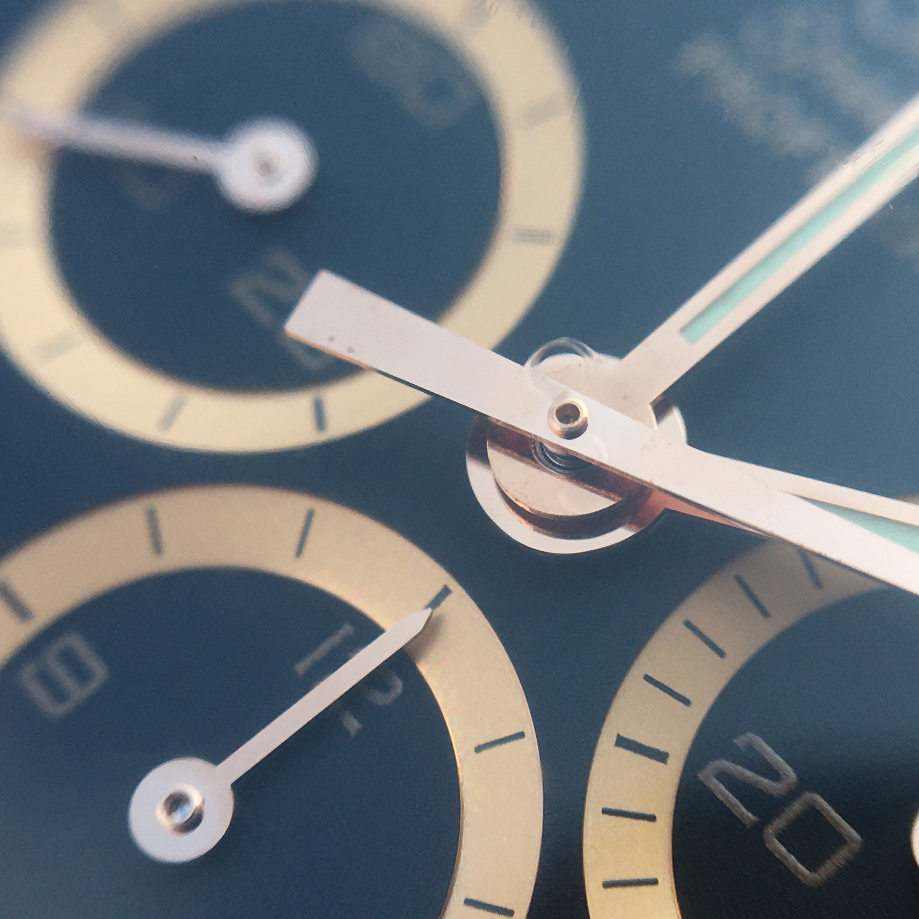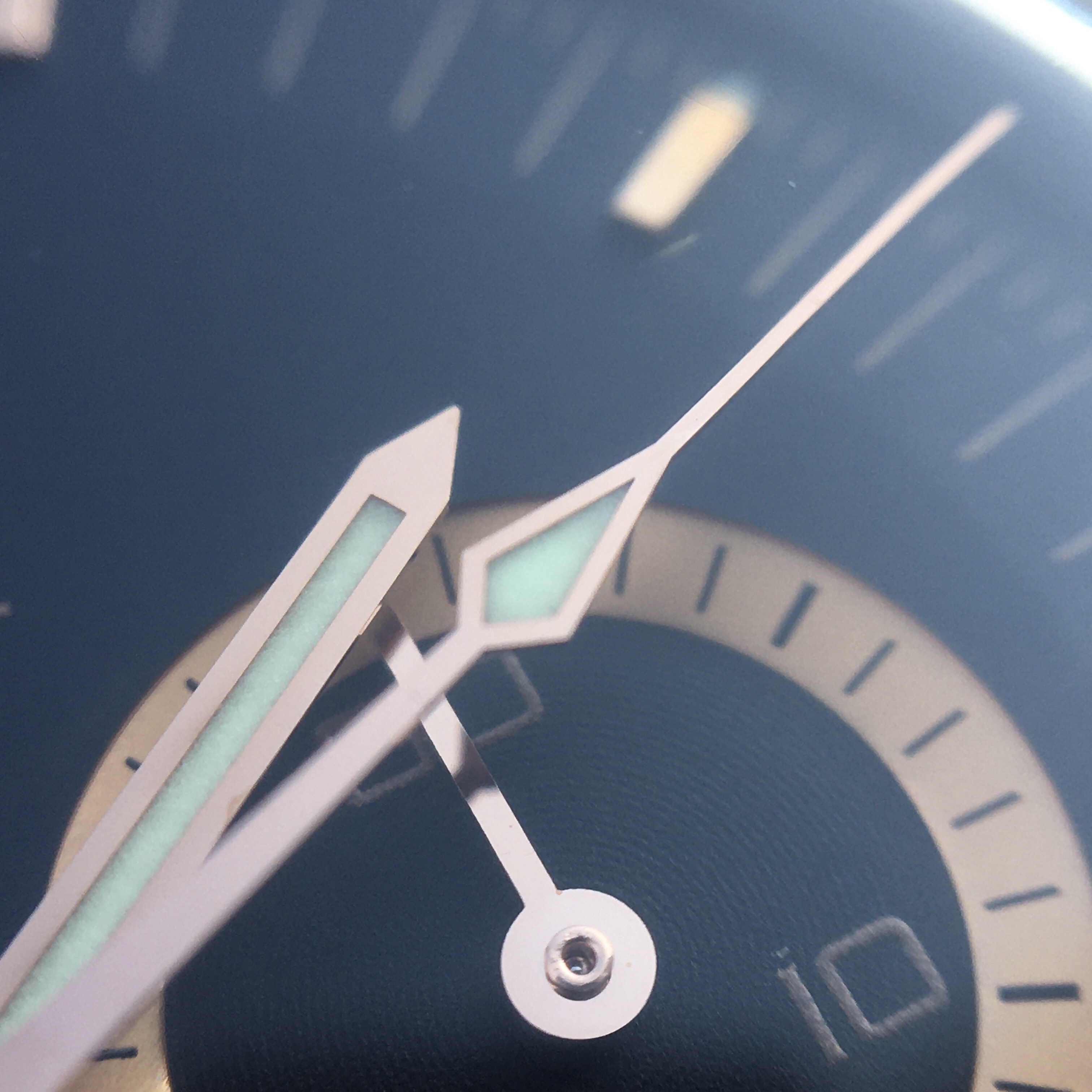 ● There’s the tiniest of specks above the “1” in the number “10” in the minutes subdial