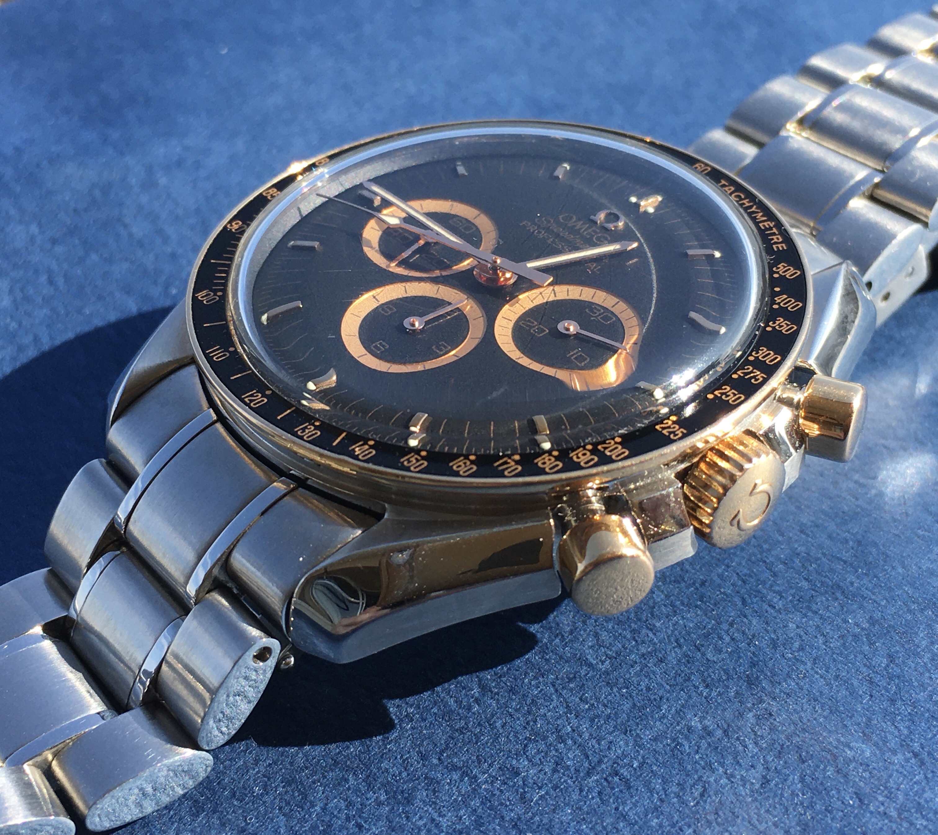 The watch is in very good condition overall, with minor scratches and marks commensurate with a 14-year-old piece (see additional notes + pictures below). The chronograph functions correctly with sharp reset. I have roughly timed the watch (by eye) at around -4s/day. I have no knowledge of the watch’s service history. Unfortunately, I don’t have movement pictures.