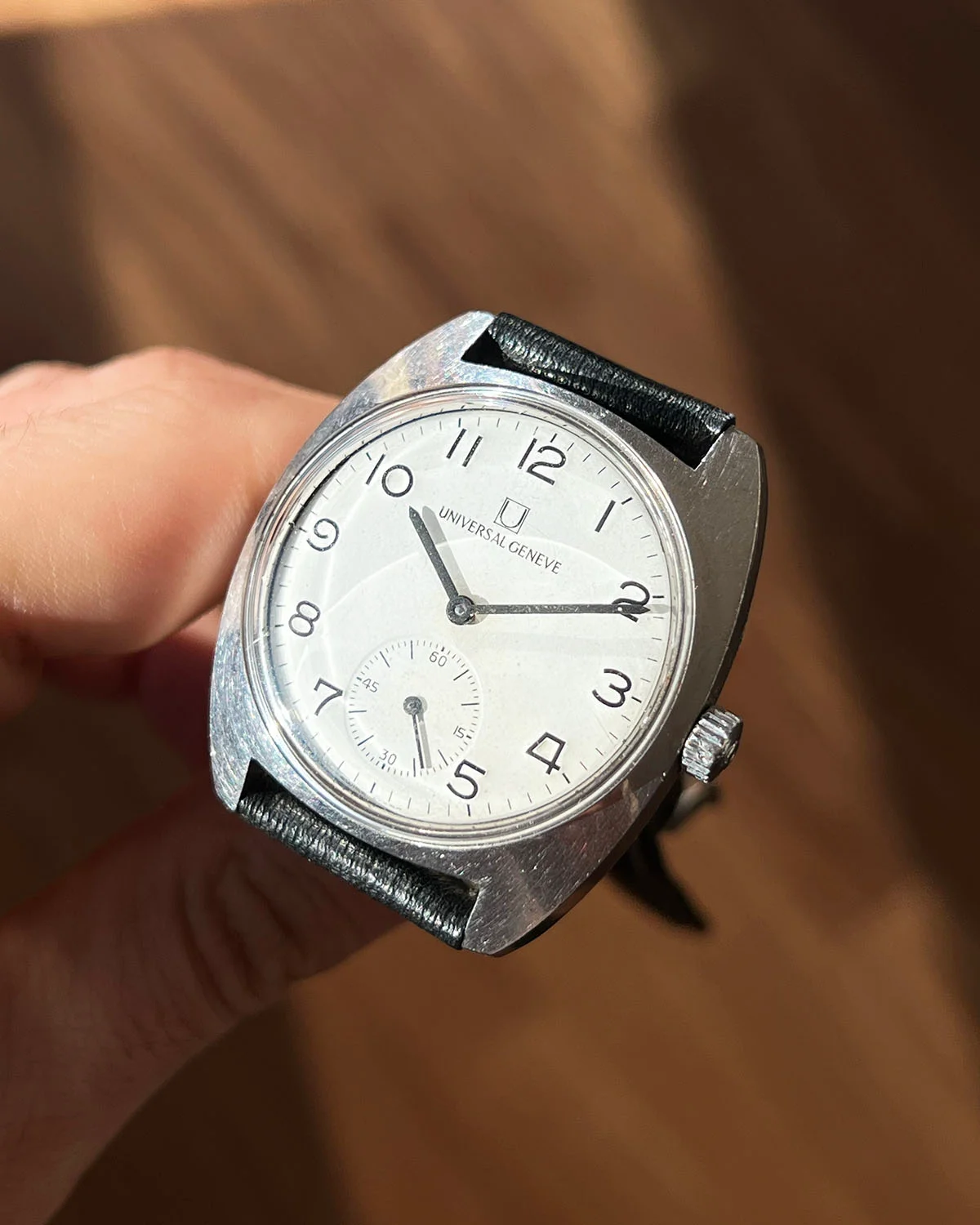Up for grabs this basically perfect example of one of the latest - if not the last - affordable Italian issued watches. This specific watch is a Universal Geneve "FS" (standing for "Ferrovie dello Stato", Italian railway company) second execution.