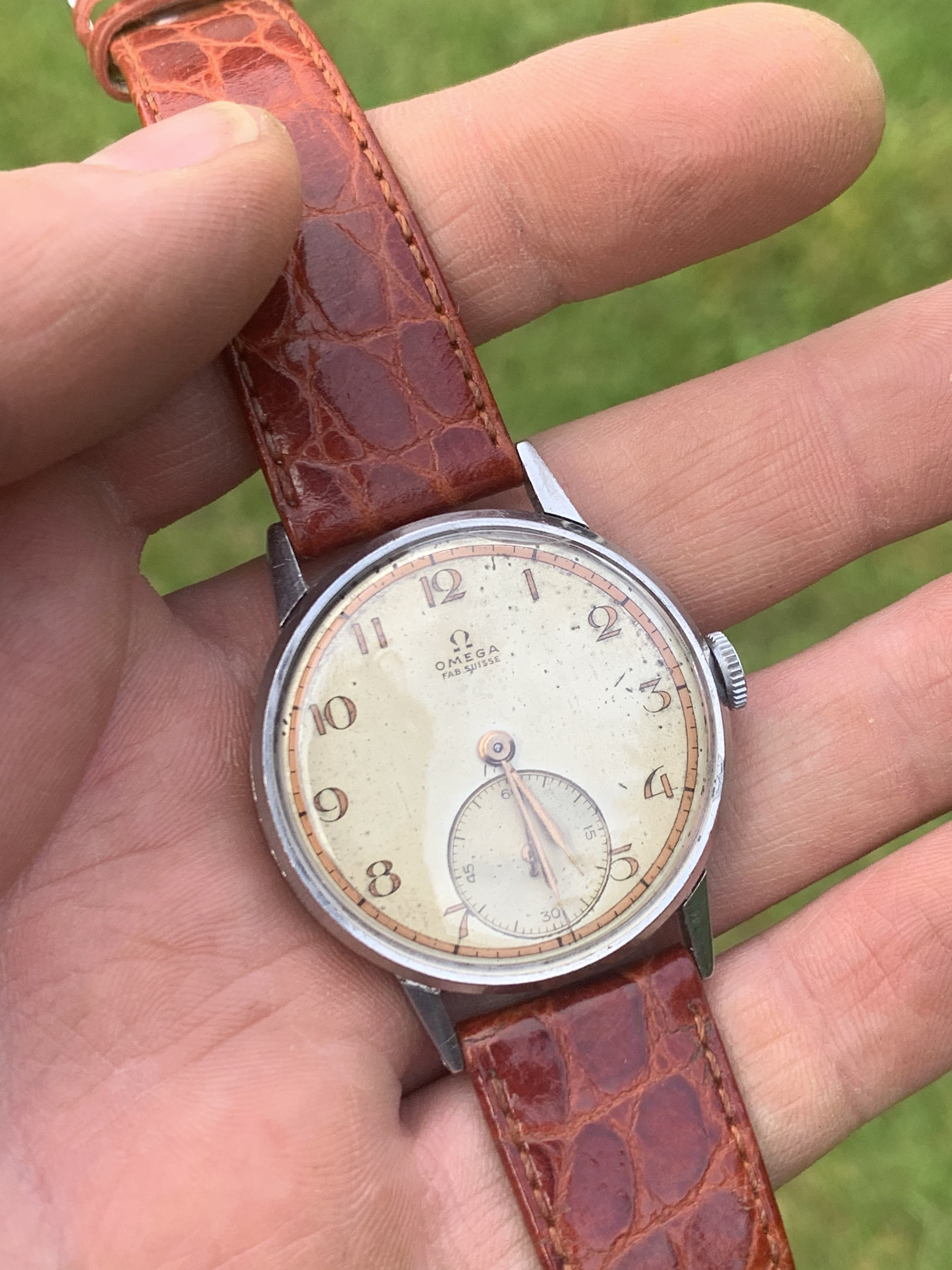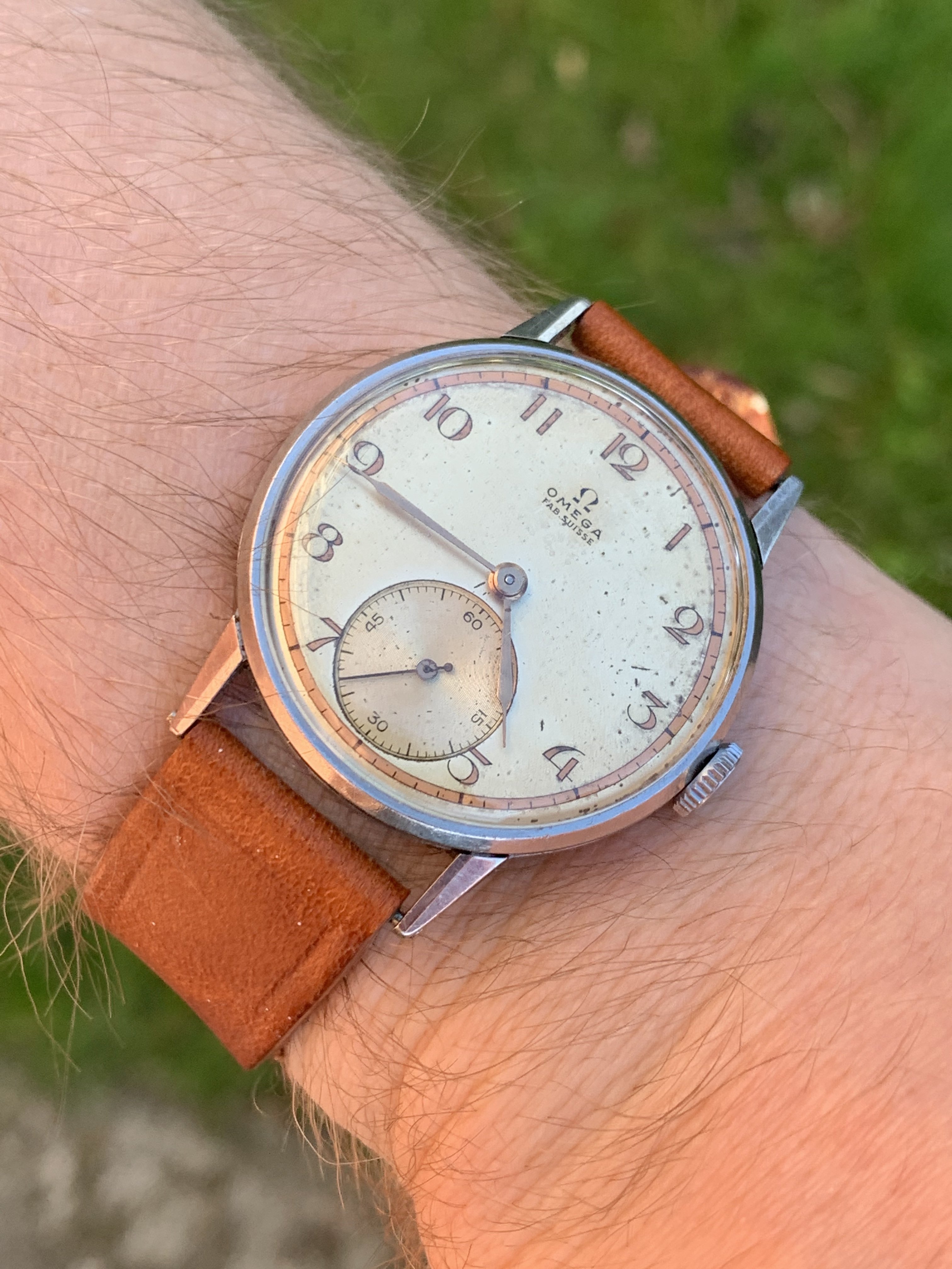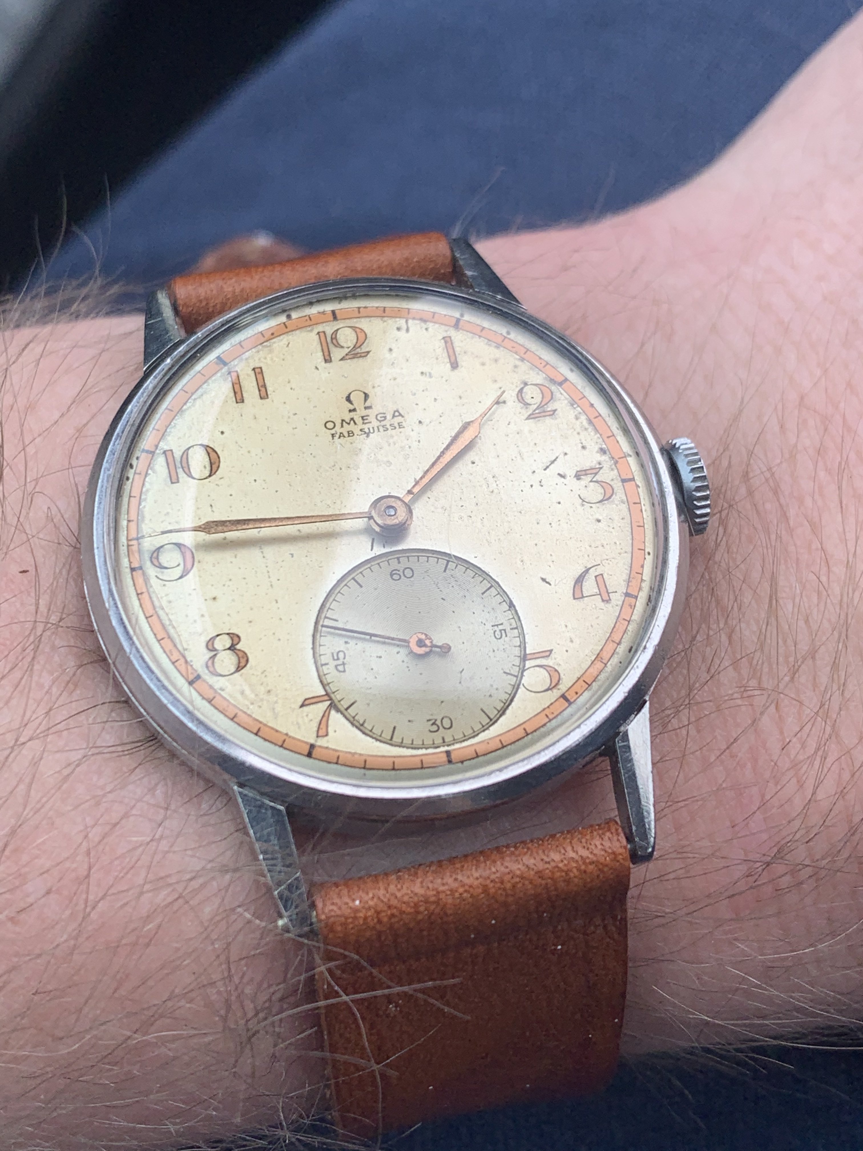 This one is a very special example, because the dial is quite a rare one. I have only seen 3 examples. One of which sits in the "Omega Enthusiasts" personal collection. It is very unusual and beautiful 30T2 from 1944 but I find myself reaching for some of my other watches rather than this one so that is why I am offering it to you today.