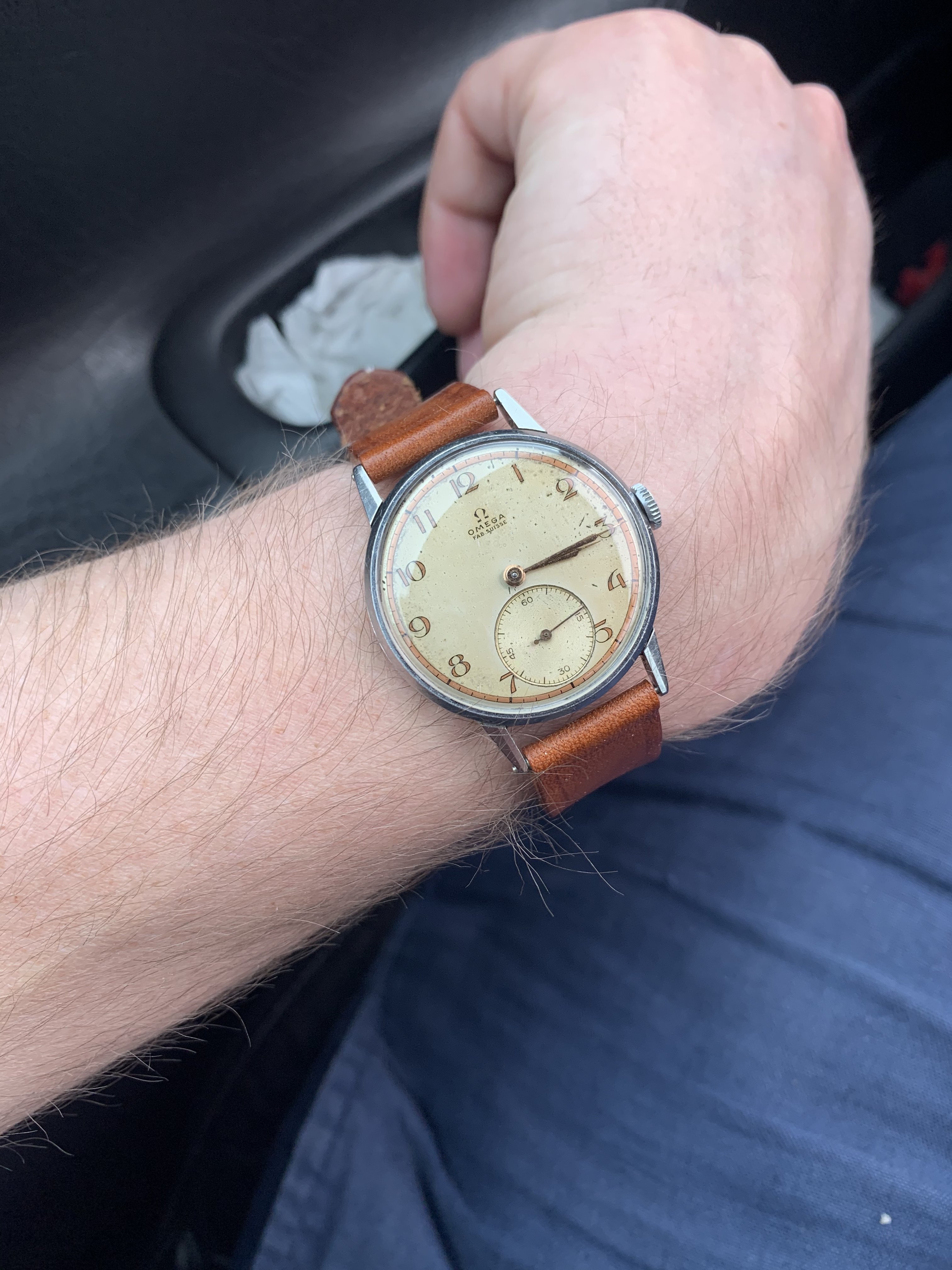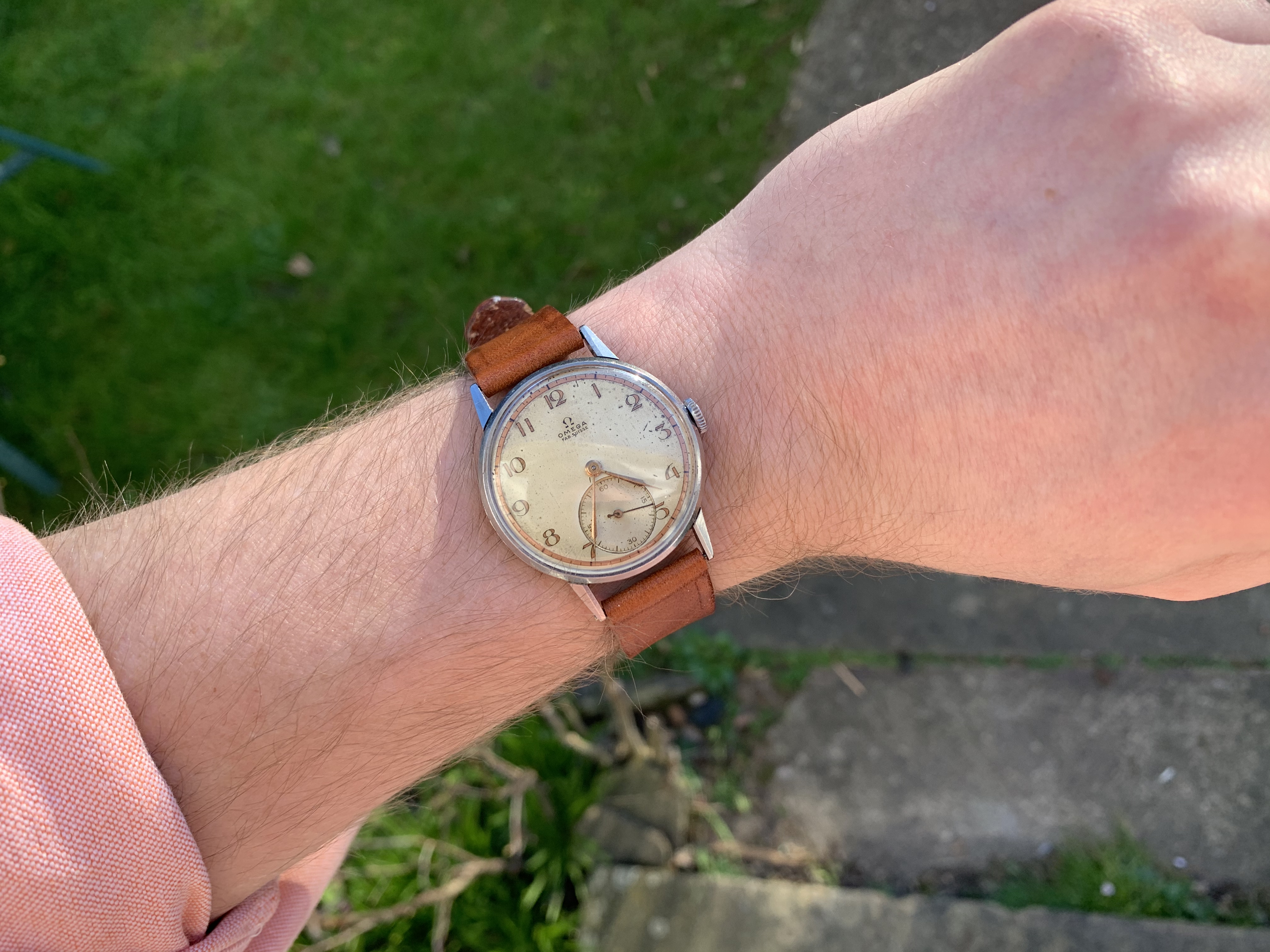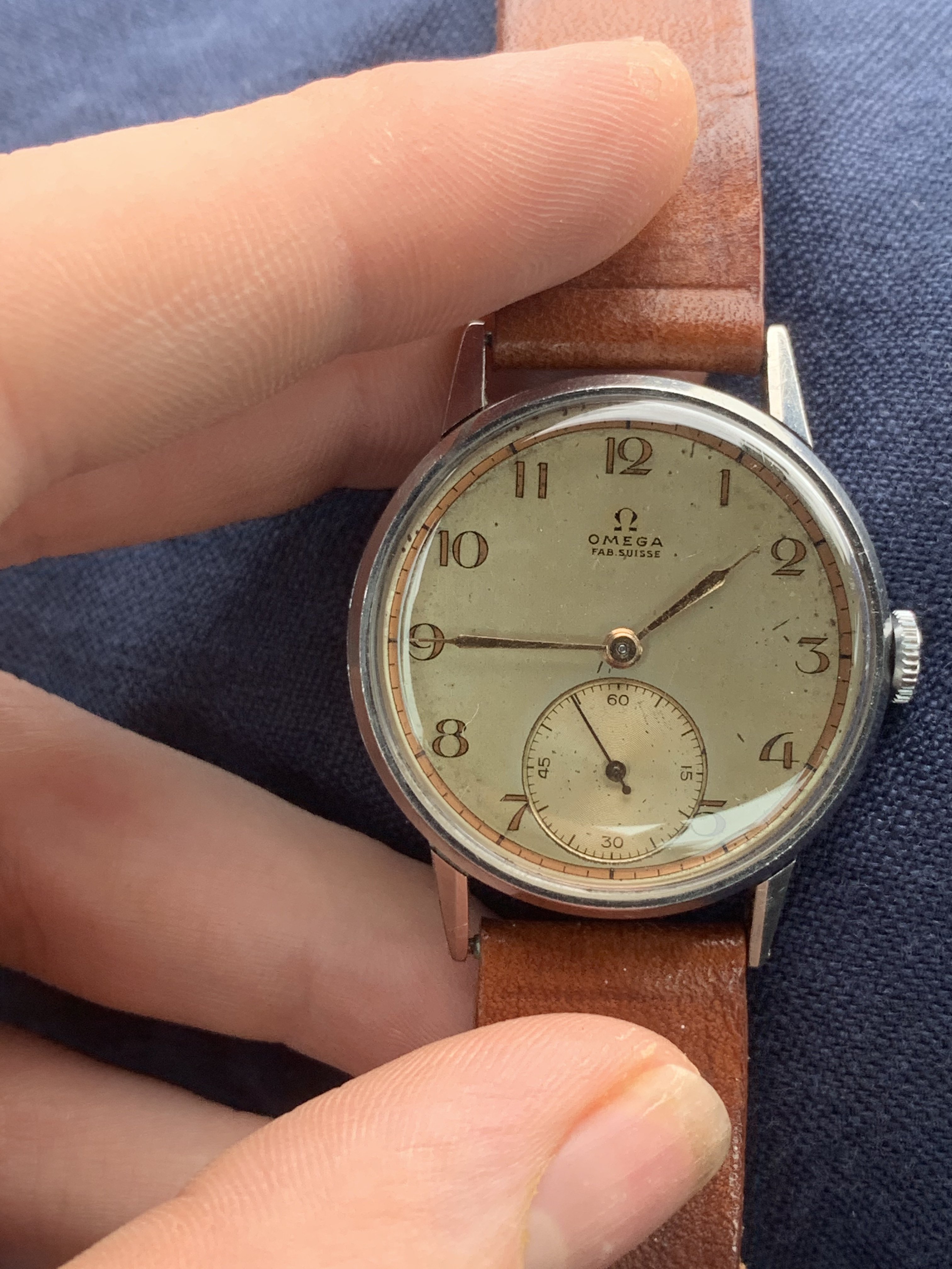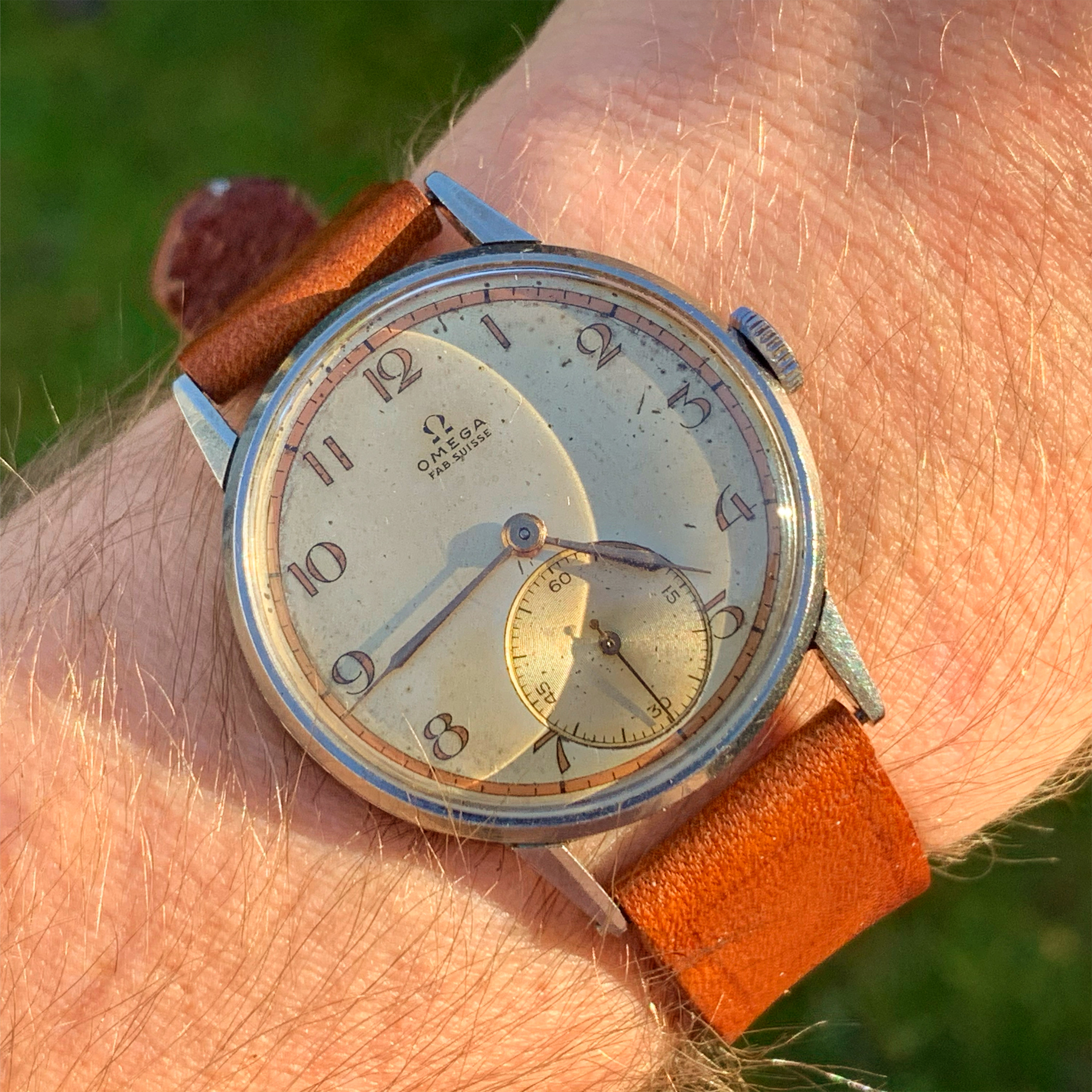 This one is a very special example, because the dial is quite a rare one. I have only seen 3 examples. One of which sits in the "Omega Enthusiasts" personal collection. It is very unusual and beautiful 30T2 from 1944 but I find myself reaching for some of my other watches rather than this one so that is why I am offering it to you today.
