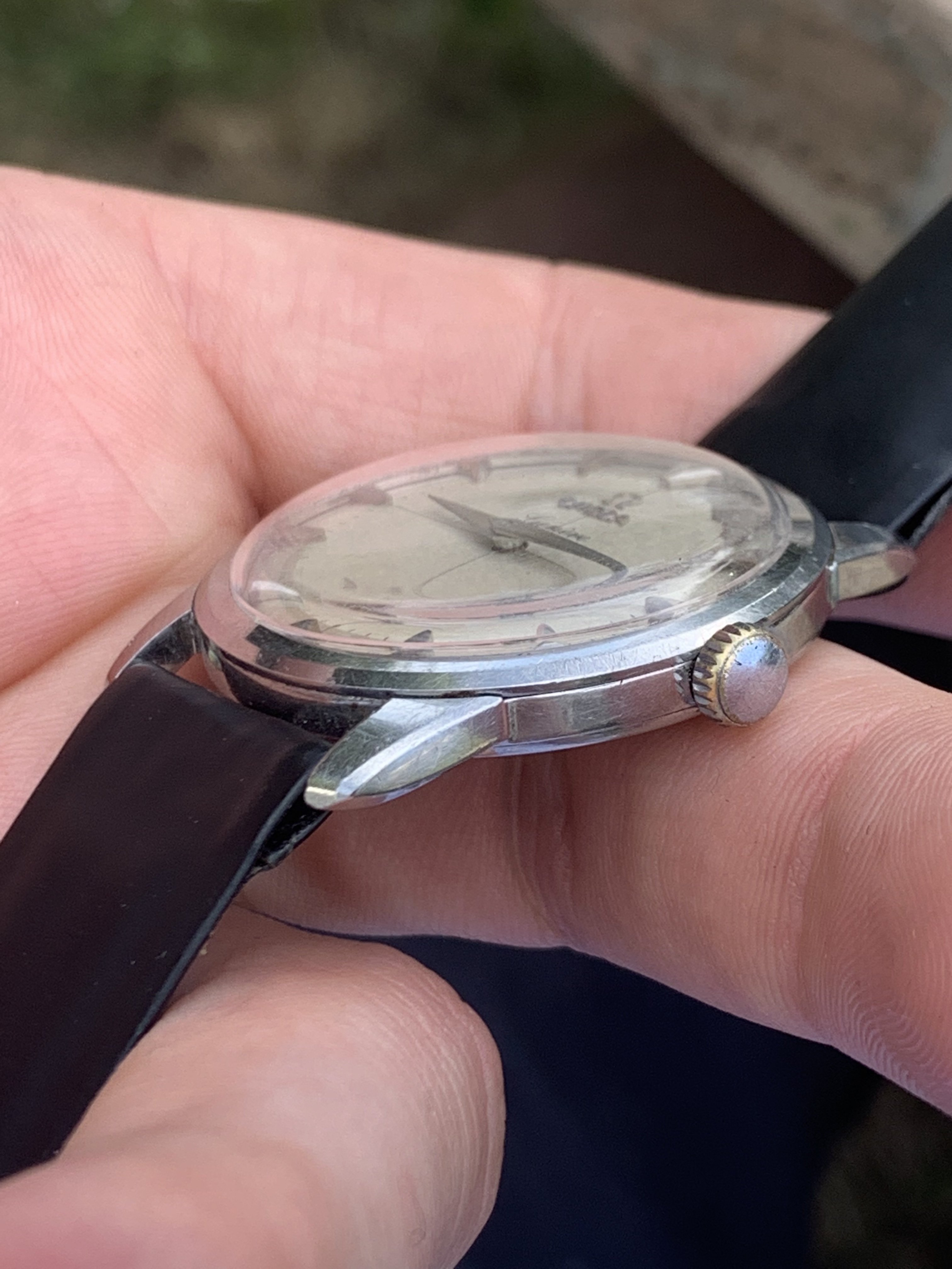 Dial: As you can see for a watch that is 65 years old, this dial is in good shape, with an even patina. This model is famous for its triangular indices and two-tone cross haired dial. It is what I fell in love with when I started this hobby and what kept me coming back for more - pure class. All hands appear to be original.