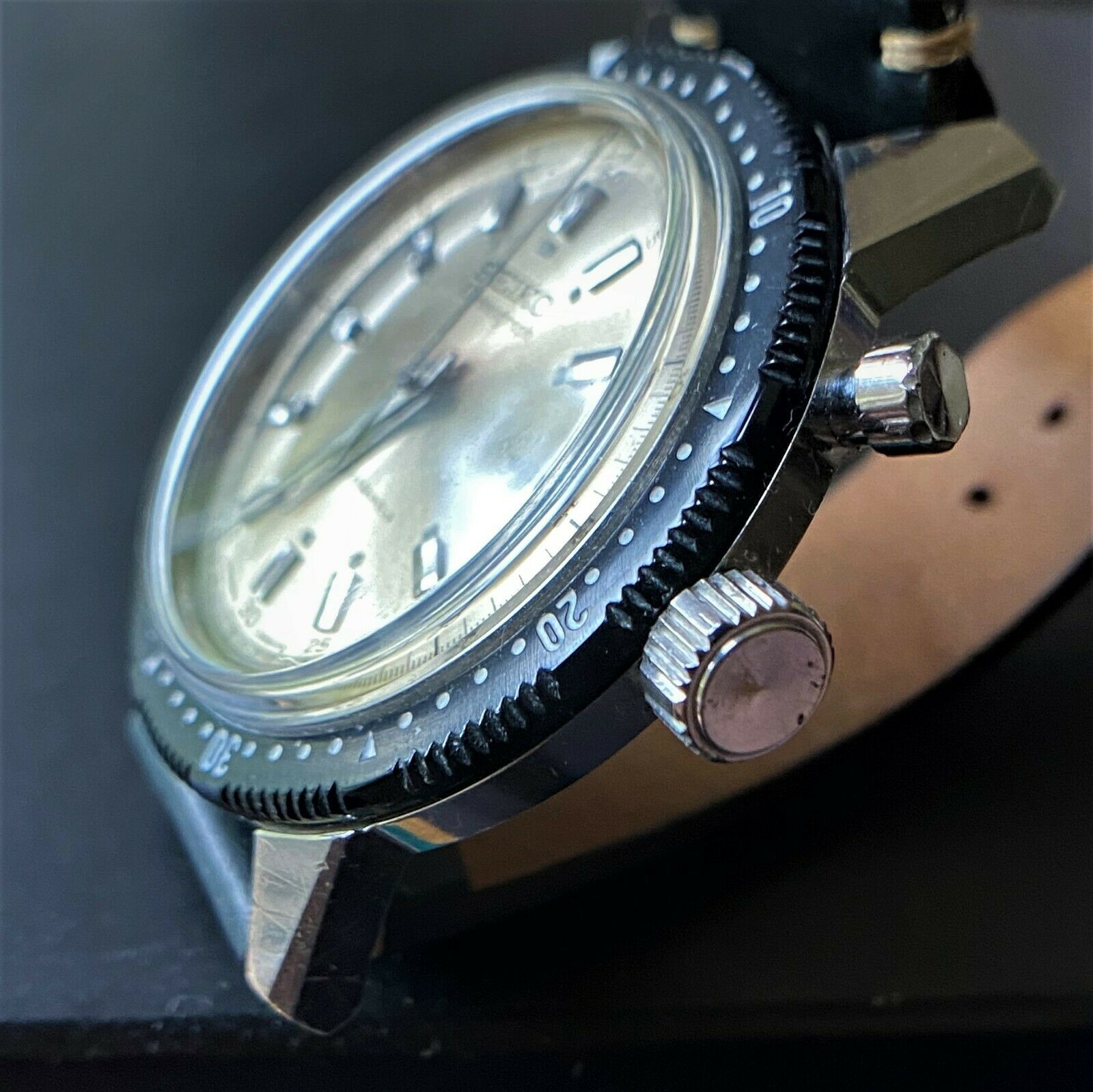 DIAL: Silver lacquered sunburst Seiko-signed dial with polished baguette markers and dolphin hands with original lume in excellent condition. Date aperture at three o’clock