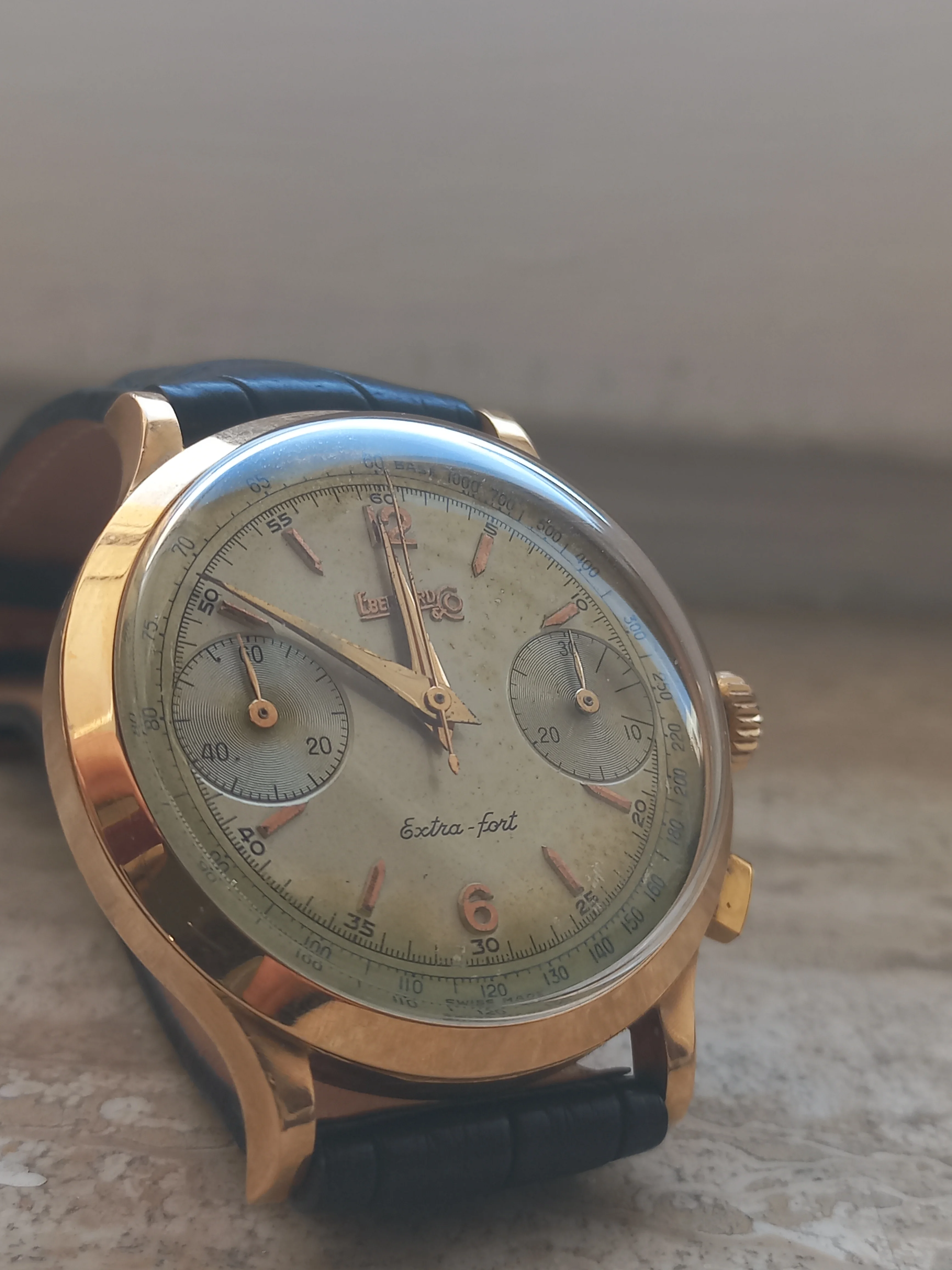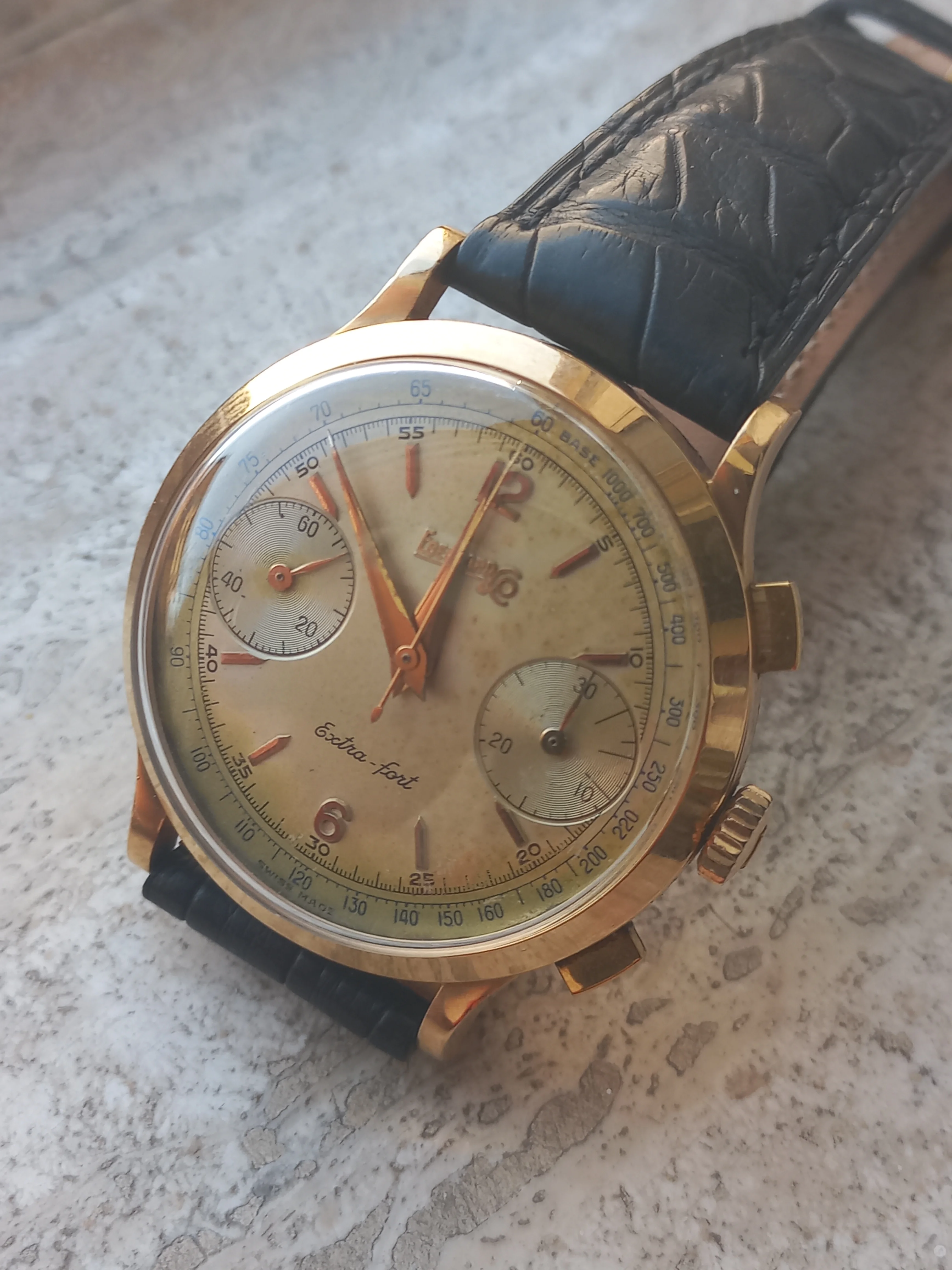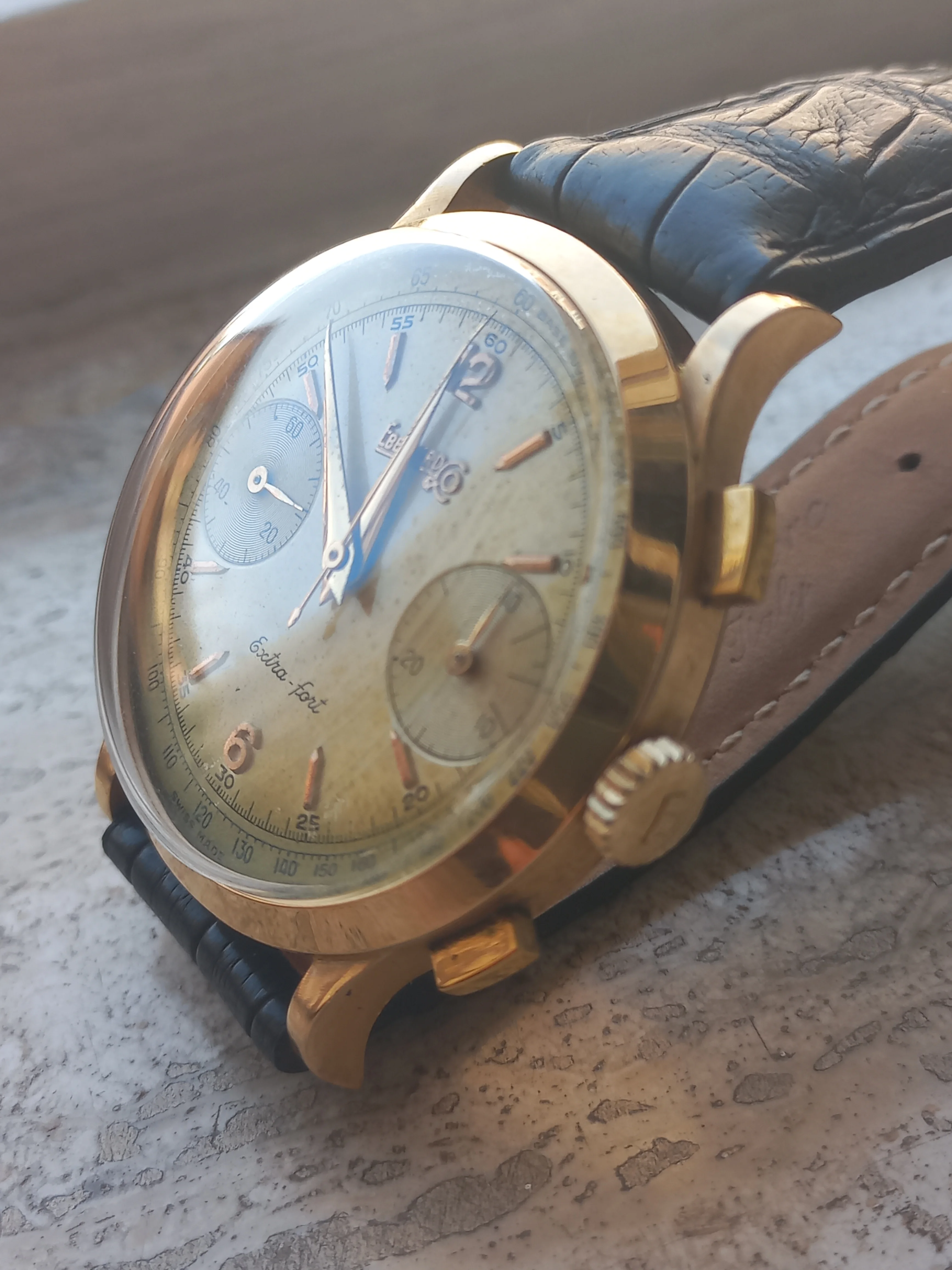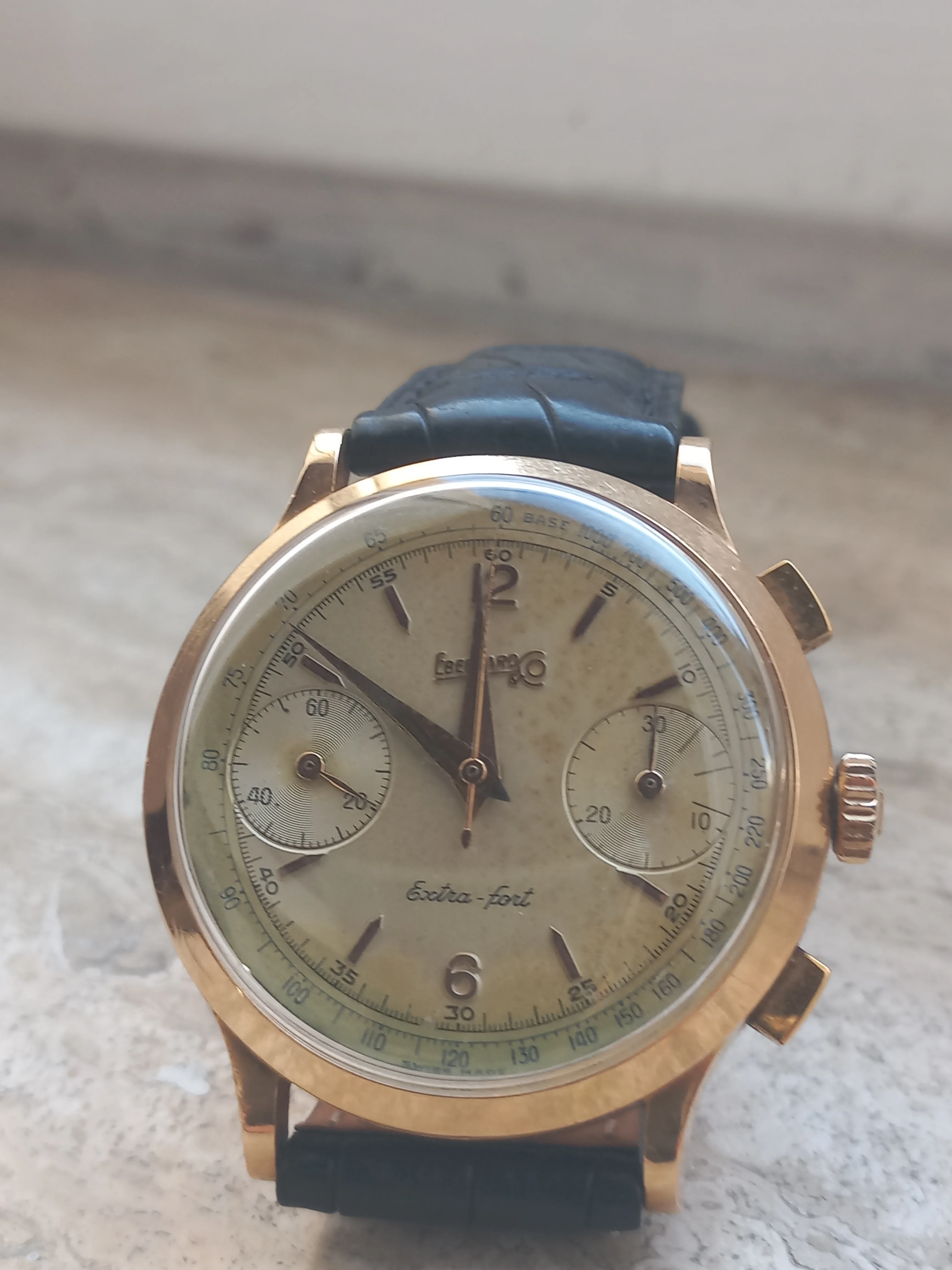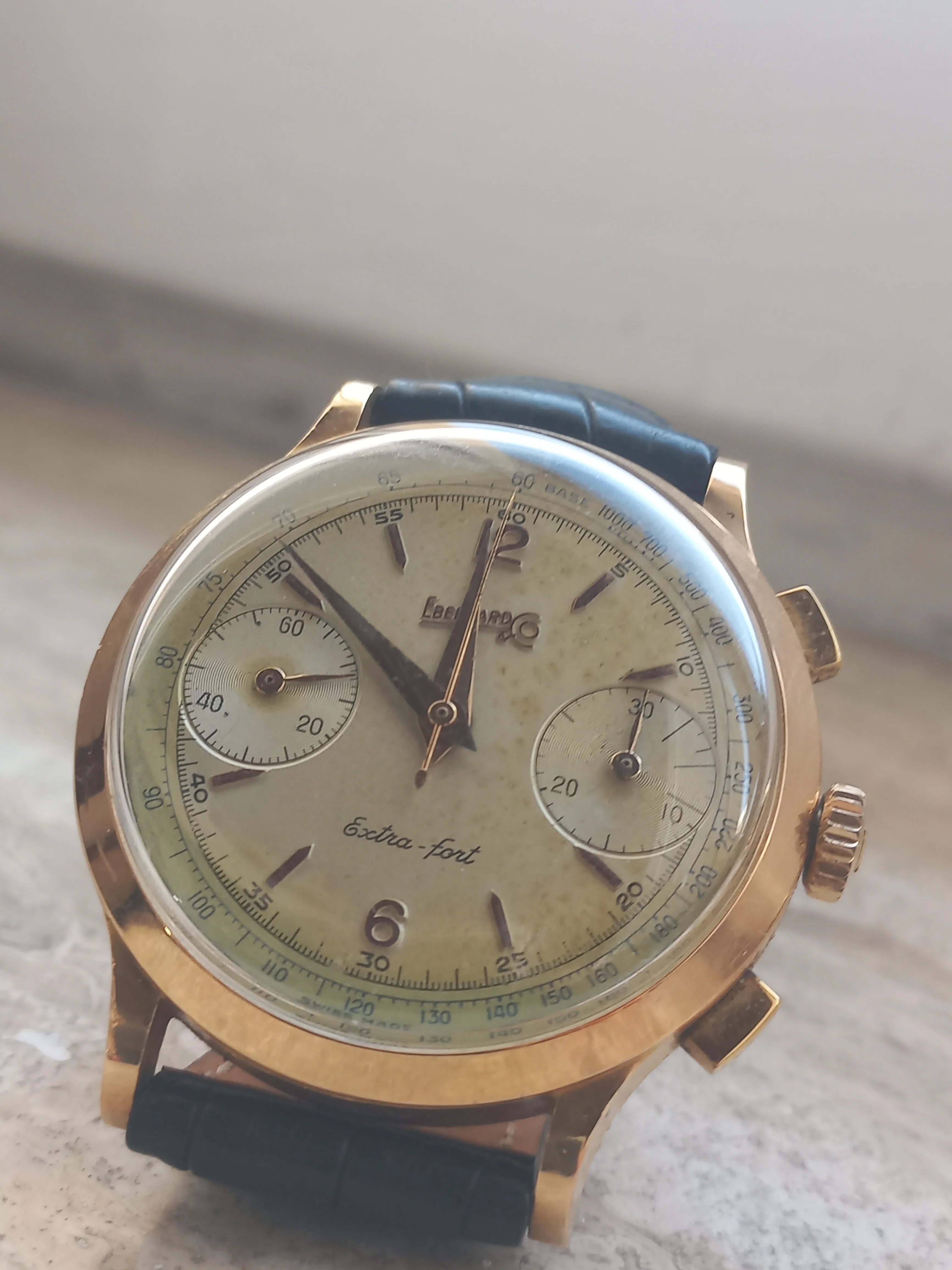 ·Hi all, after a couple of unexpected additions something else has to leave, so I decided to part with my Eberhard Extra-Fort 18kt golden chronograph from the 50s.