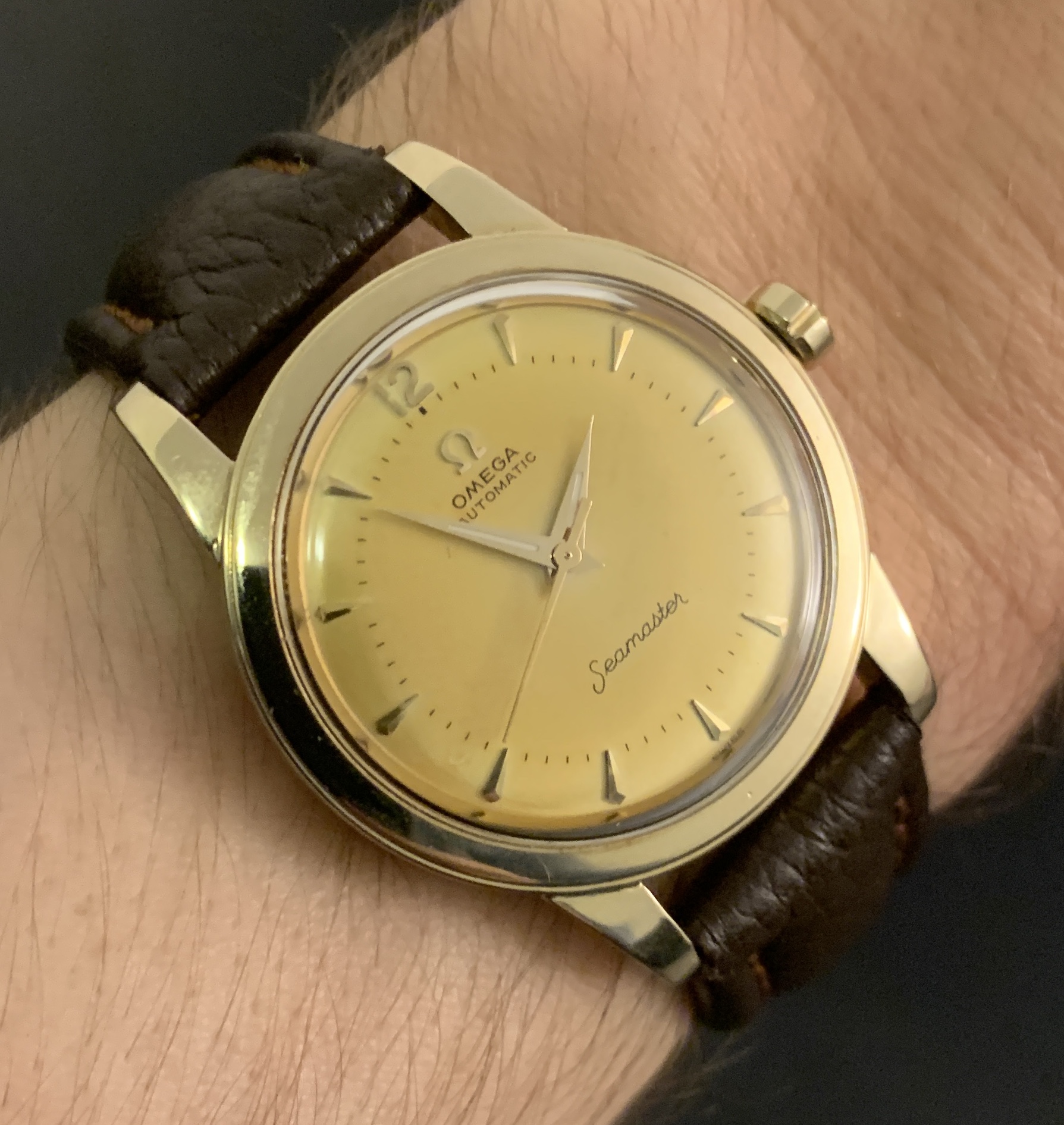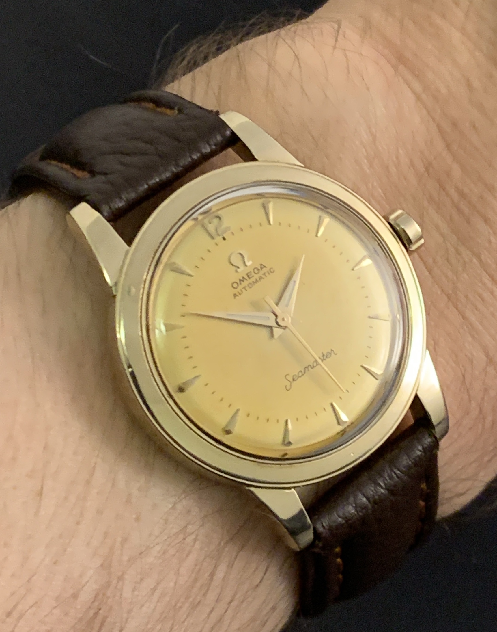 Dial: Factory original, even golden patina'd evolved from a silver finish.