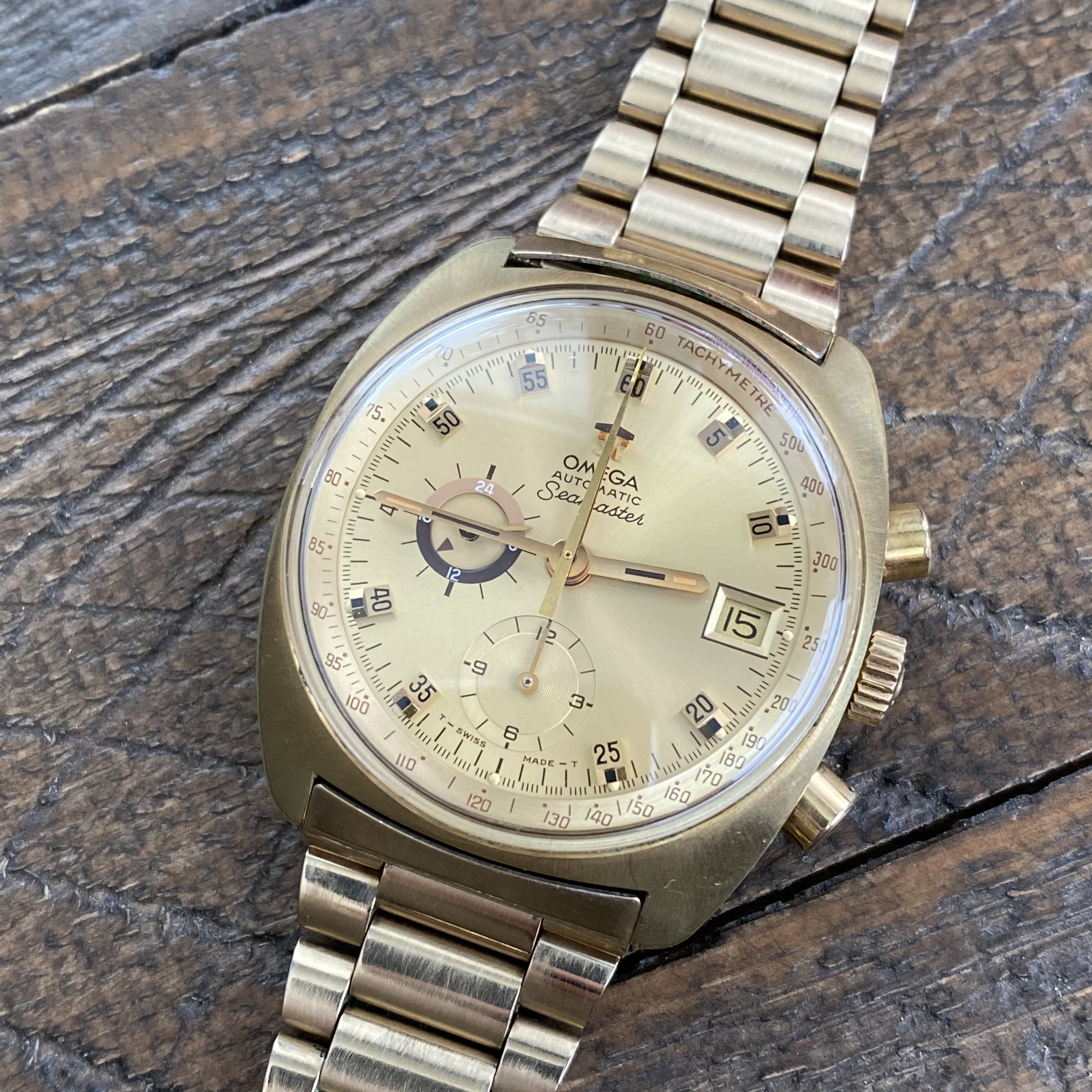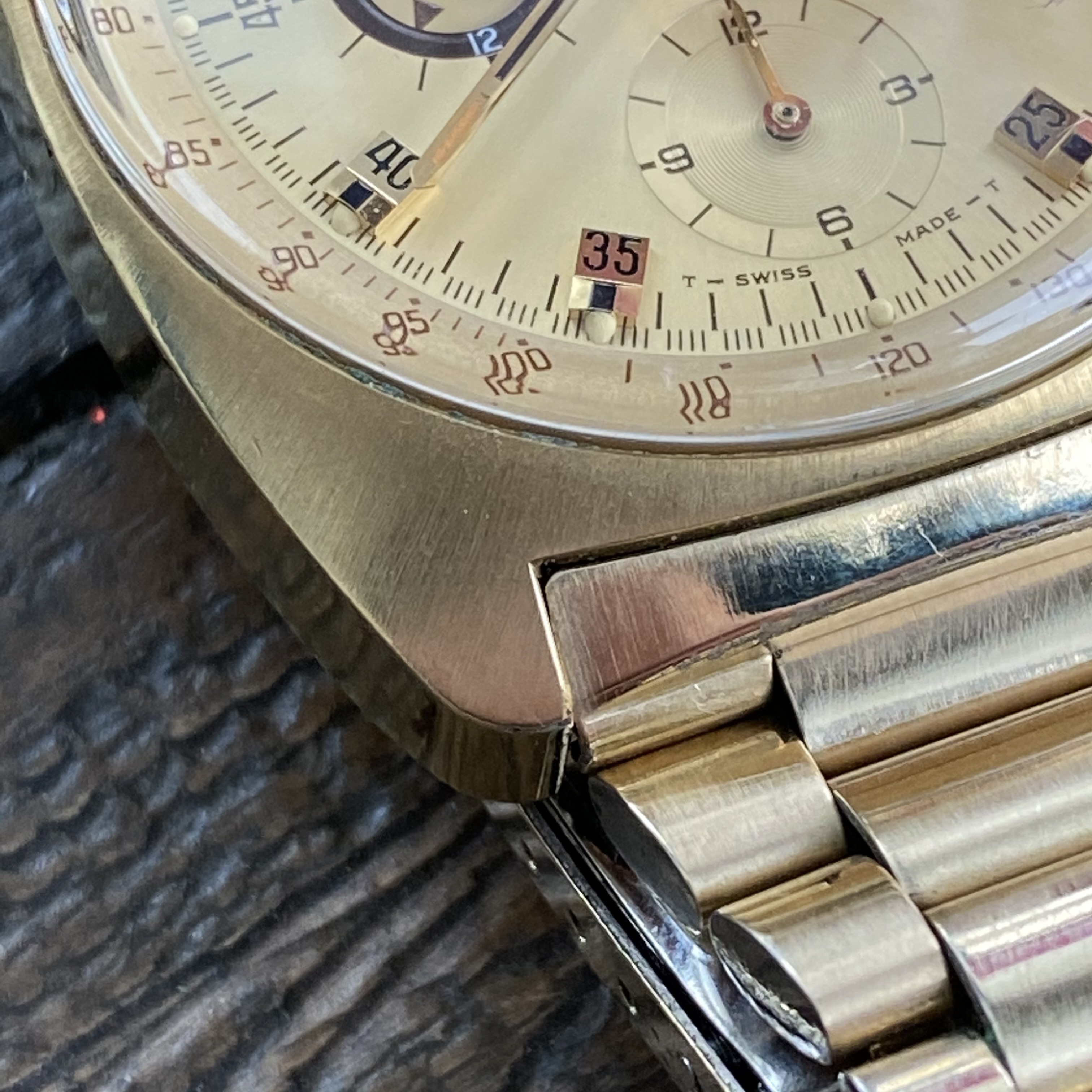 Self-winding cal. 1040 was serviced in 2019 and sets, starts, stops, resets, and keeps time as expected. Serial number is 36267XXX which dates it to 1975 or 1976.