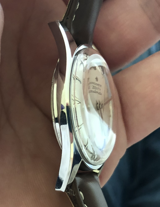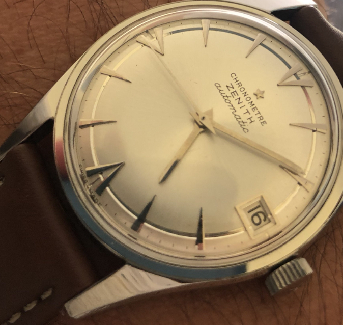 Automatic with chronometer marked on dial. Keeping excellent time, winds and sets well. Original crown, scratch free crystal. The case is in Incredible condition. 18mm lug width and comes with correct and genuine Zenith buckle with lovely brown leather strap.