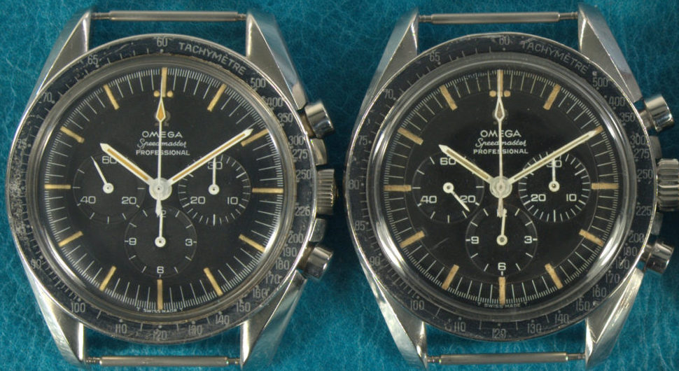 I tried to educate myself a little about the dials of the Speedy Ref. 105012 lately - closed T´s, wide spaced T´s, asymetrical T´s, no T´s - and I noticed that there seems to be some variation in the thickness and length of the tritium indexes. I think the photo below from Speedmaster101 shows pretty well what I mean exactly:
