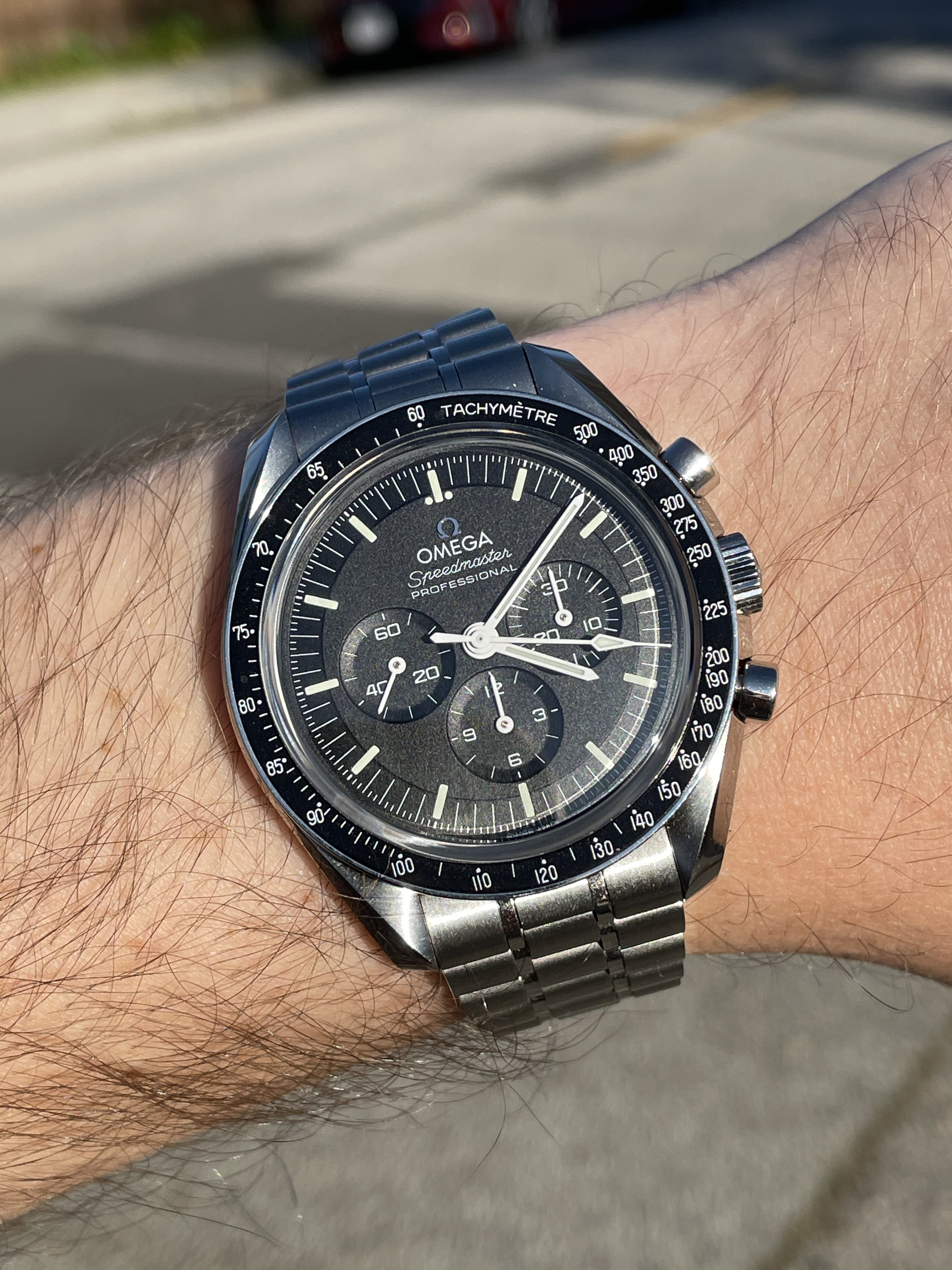 ·I recently purchased the new Master Chronometer Speedmaster Pro sapphire sandwich (ref # 310.30.42.50.01.002) but am not a fan of the polished center links on the bracelet and would like to replace it with the fully brushed version that comes on the new hesalite model (310.30.42.50.01.001).