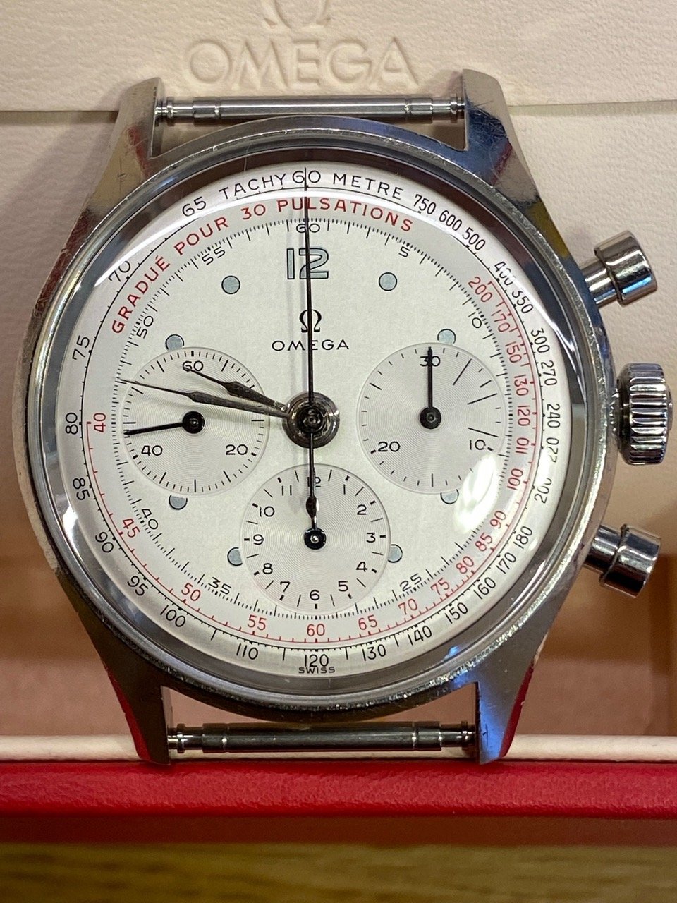 I am switching to Lemania, slightly irritated at Omega (Bienne) after they, against my instructions, repainted a dial on an old 27CHRO, pulsometer dial from 1946. I purchased it in Florida and was chasing this model quite a long time. Happened over one year ago and these pulsometer dials are not easy to find. Explains my interest in this Lemania...