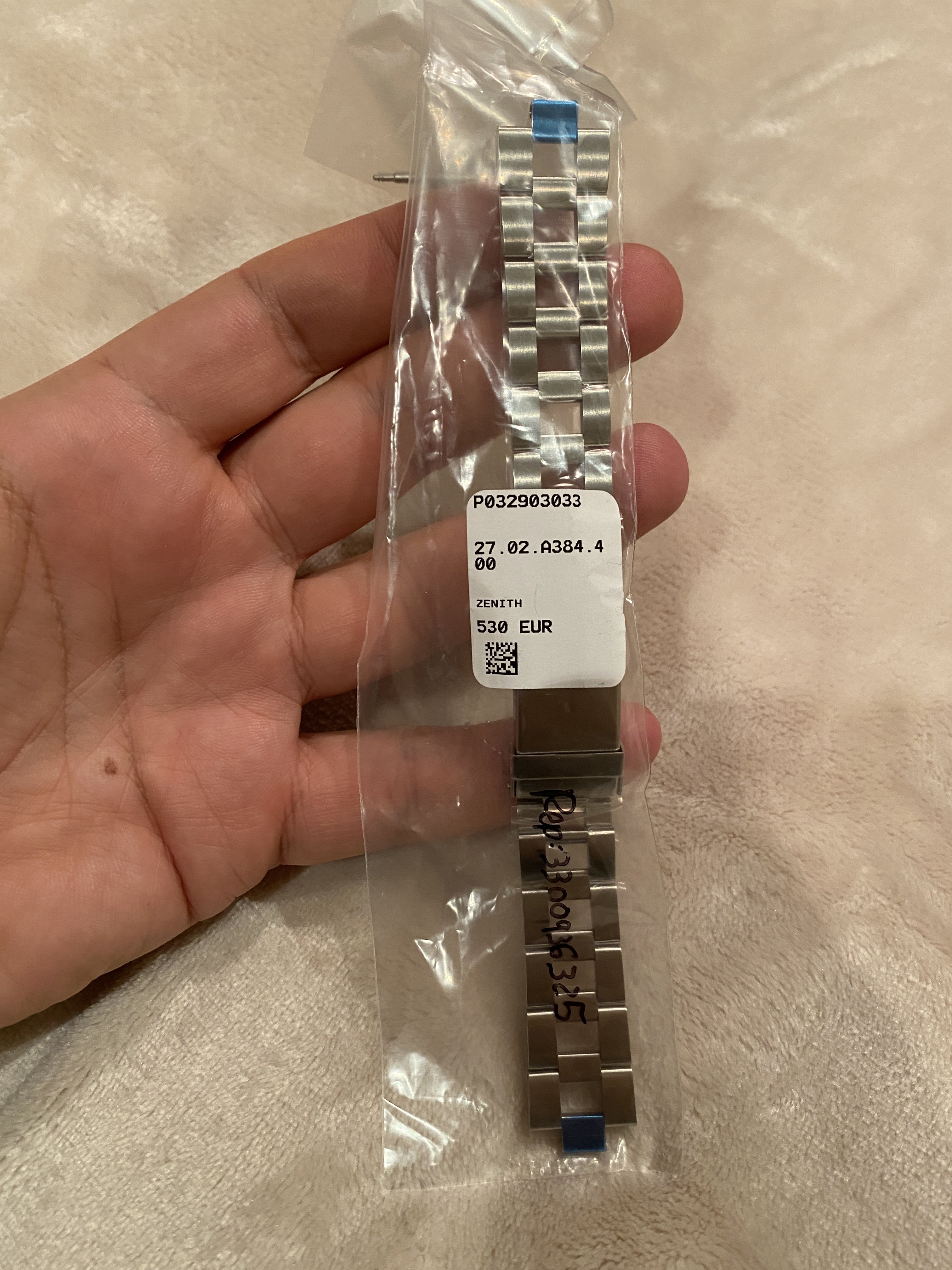 I've seen the threads mentioning the part numbers for the reissued Zenith ladder-style bracelets.
