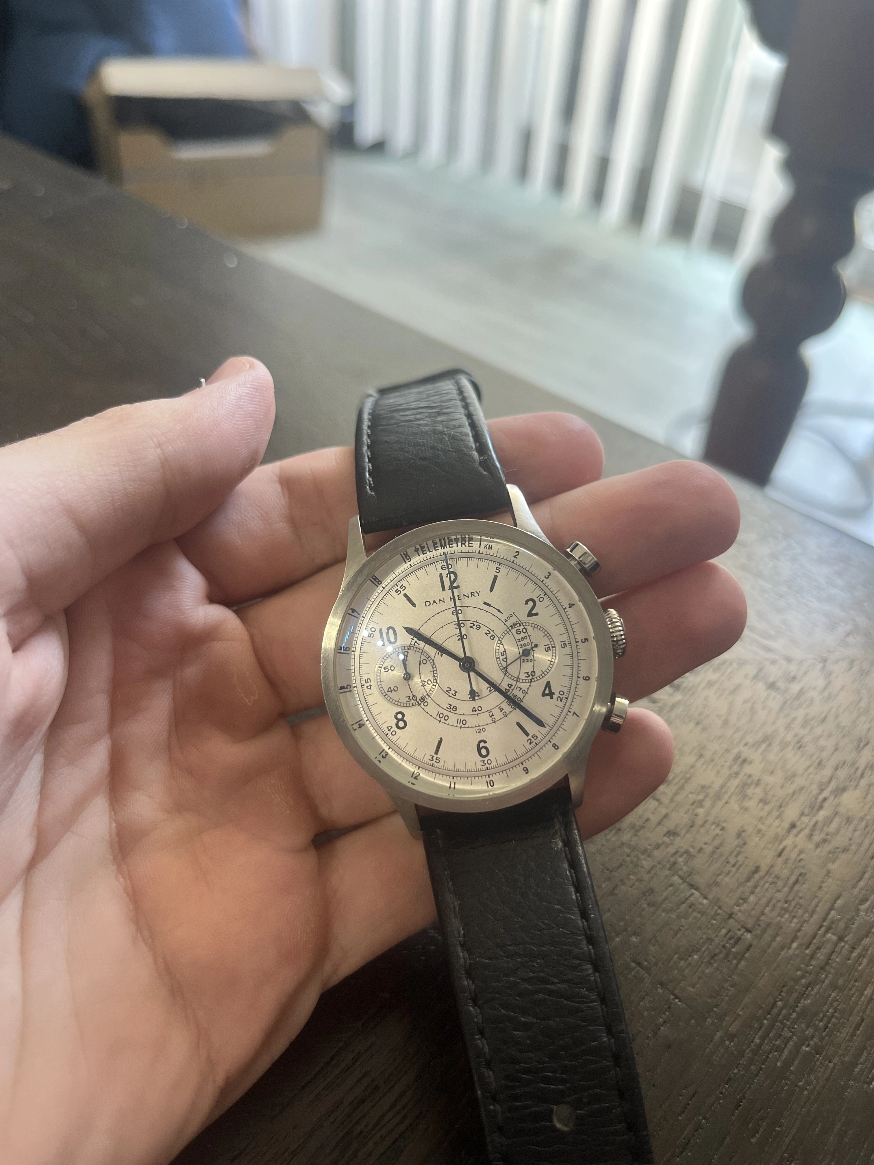 3. Dan Henry 1939 military chrono. The first watch I bought myself as I fell in love with the design and blued steel hands. My only wish is that it was automatic!