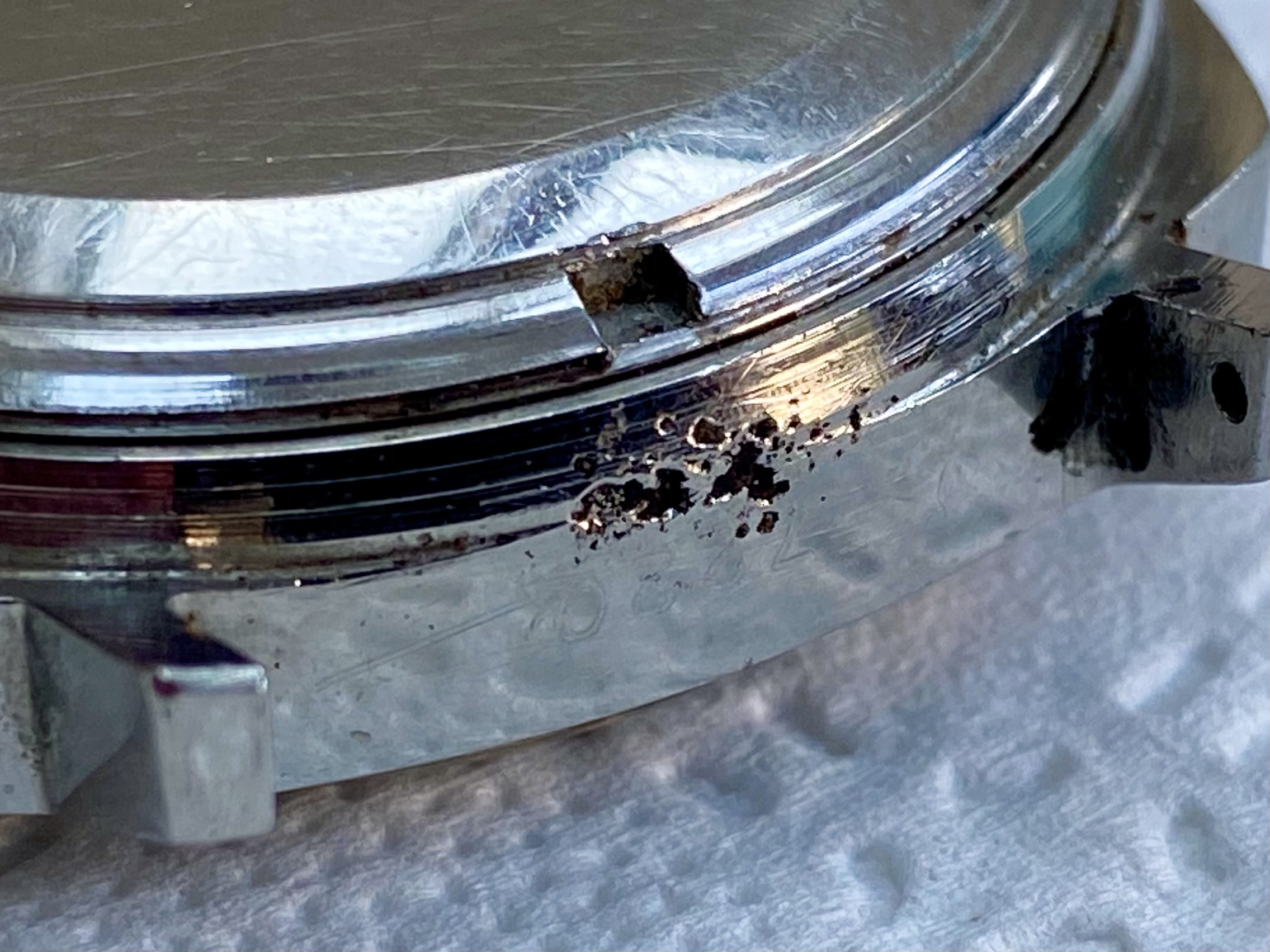 ·A recent acquisition has some unfortunate pitting between the lugs. I was aware of this before purchase and as the dial combo is so wonderful I’m happy to accept it. However, I would like to stop it spreading.