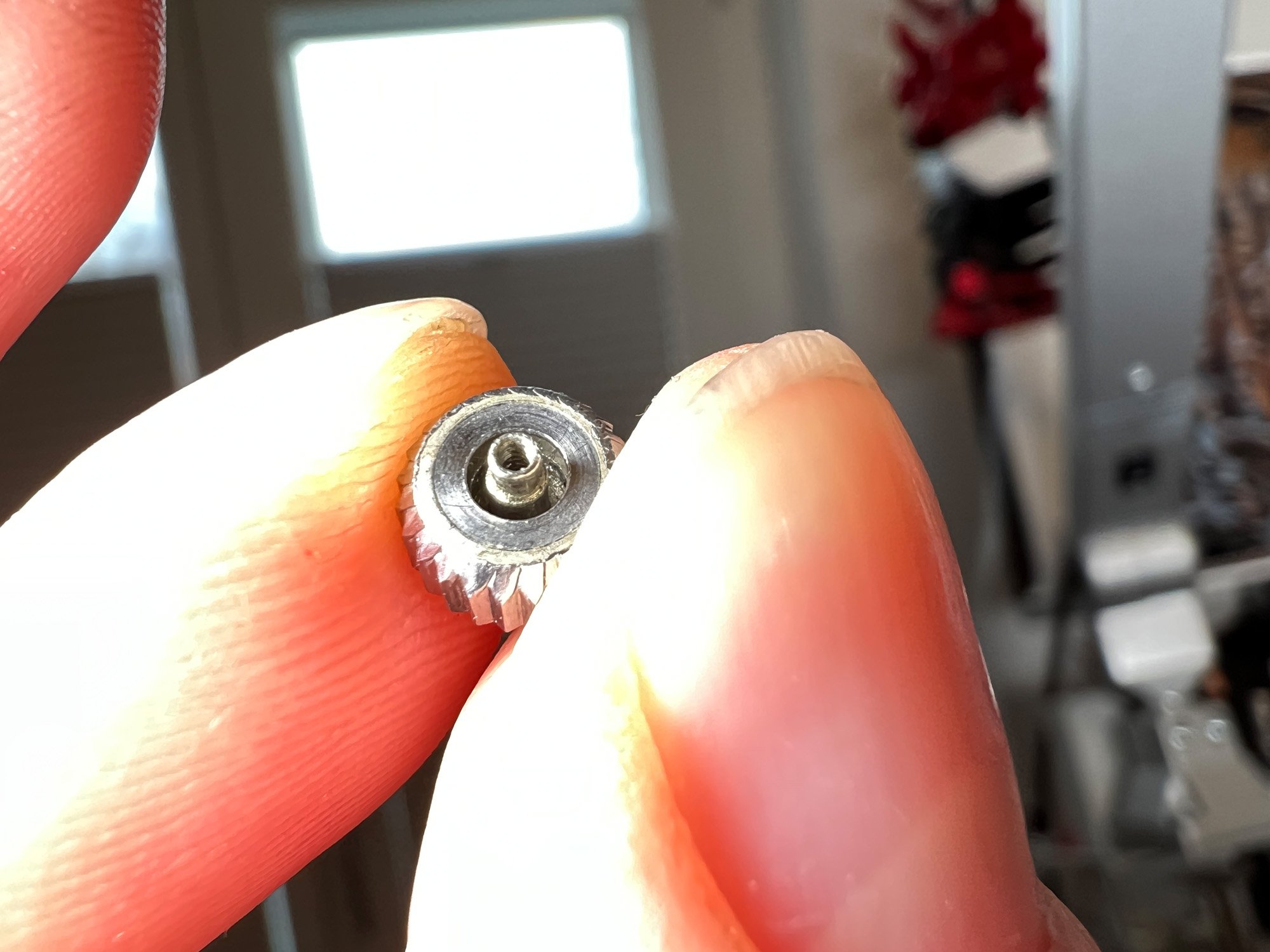 I could even do some measuring. The gasket in the old Narrow Flat Feet crown is a single zylindric one. Compared, the new crowns come along with two staked round donut gaskets. The inner diameter of 2.1mm seems to be identical. And also the width of 0.8mm. But the height differs. Whereas 2x staked donut gaskets have a total height of 1.6mm, the zylindric one has around 1.2mm. And the 1.2mm is approximately actually the available space in the crown.