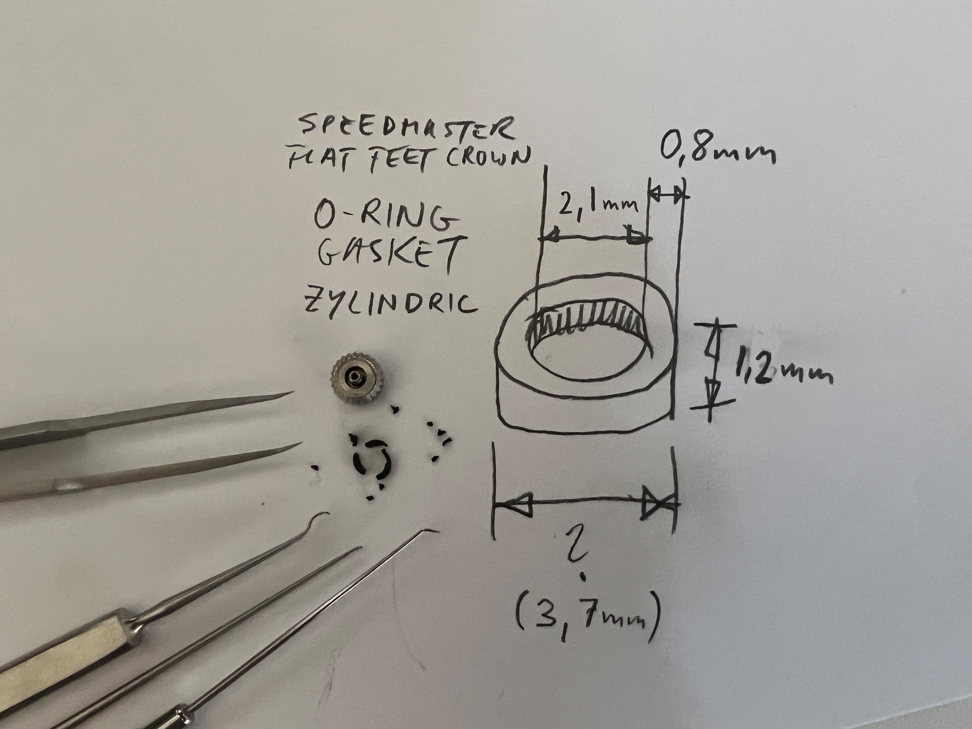 I couldn't find a zylindric gasket. So I have to decide if I want to give it a try with two staked donut gaskets that are usually used for the new crowns. I'm not sure if the two gaskets could be compressed by around 0.4mm in height.