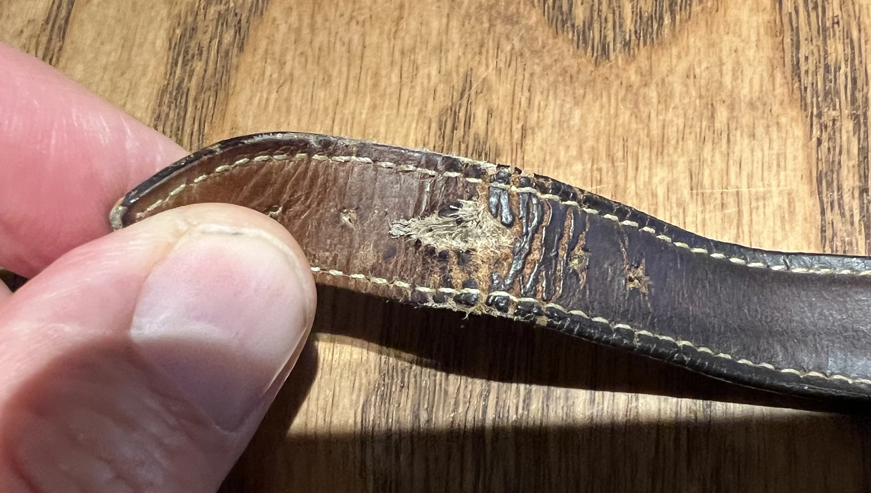 I don't know what I'm looking at in those photos, but the strap doesn't look like it's about to break, so maybe you should just keep using it. Eventually it will need replacement, because straps don't last forever.