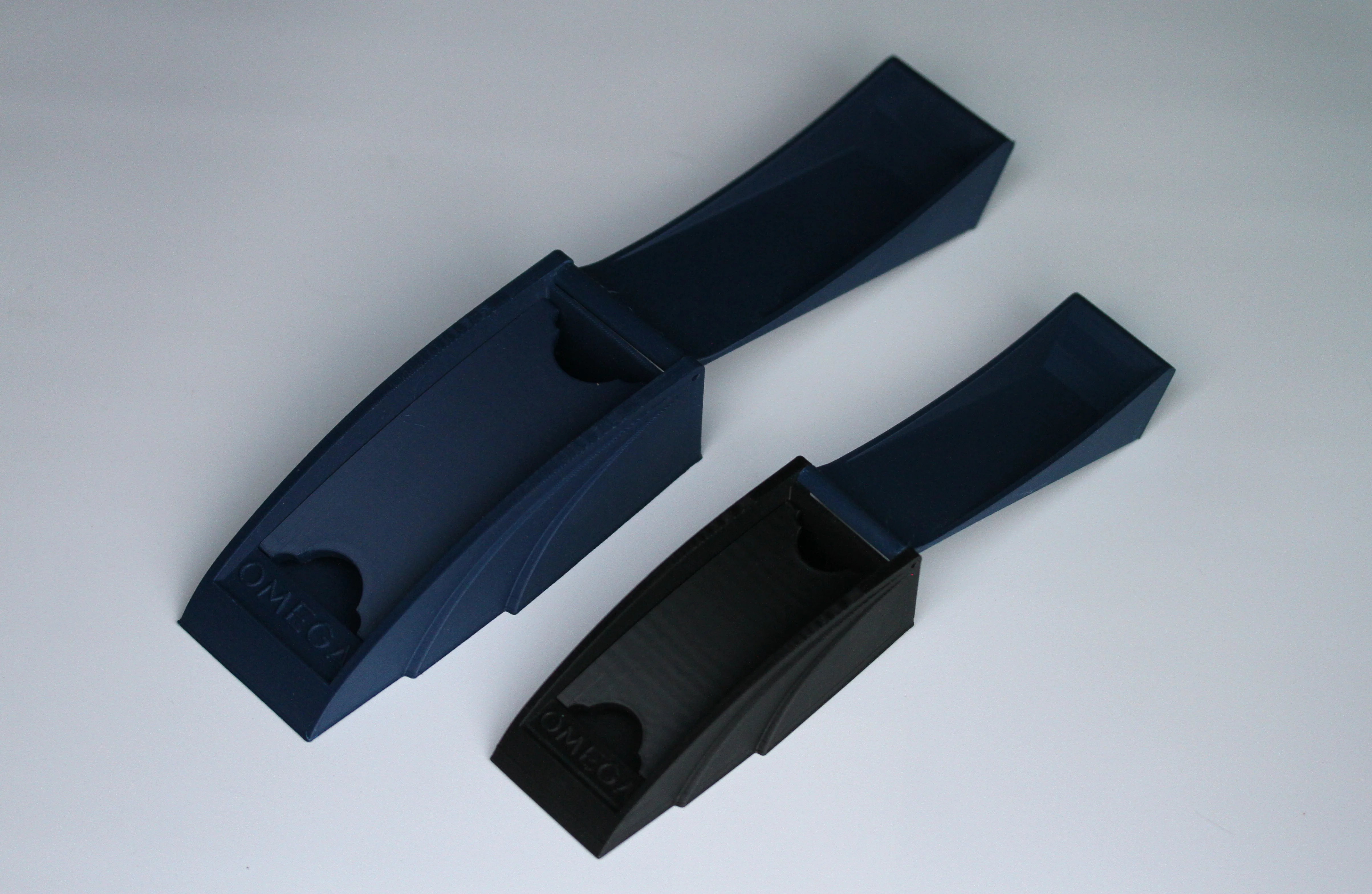 I modeled two "watch beds". One is more historically accurate and the other has thumb holds to make it easier to remove. The original box a nice fabric pull tap. I can't print one of those, hence the variant with the finger holds.