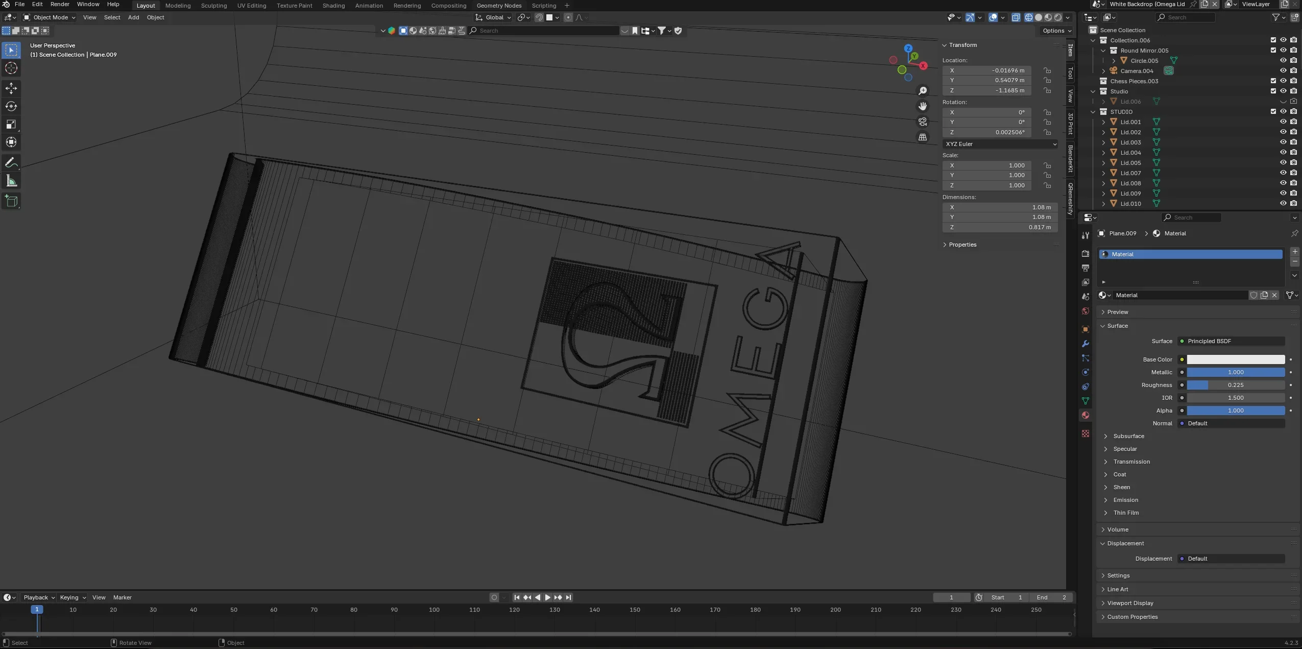 With a box in hand and a fine caliper, I got to work. Along with the box dimensions and geometry, I had to recreated the Omega font by tracing it.