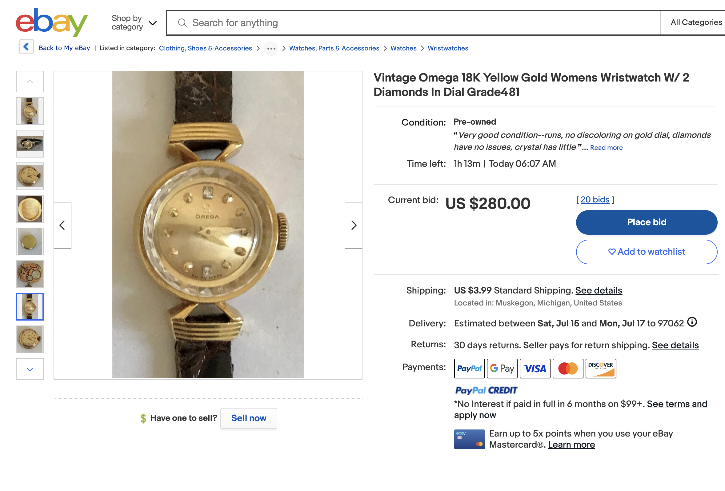 Now I'm feeling the urge for a third watch, and this time I want something feminine and jewel-like. I found the watch below on eBay, offered for about $750, which fits the bill, and am wondering what people think. Here's what I've gathered/guess: