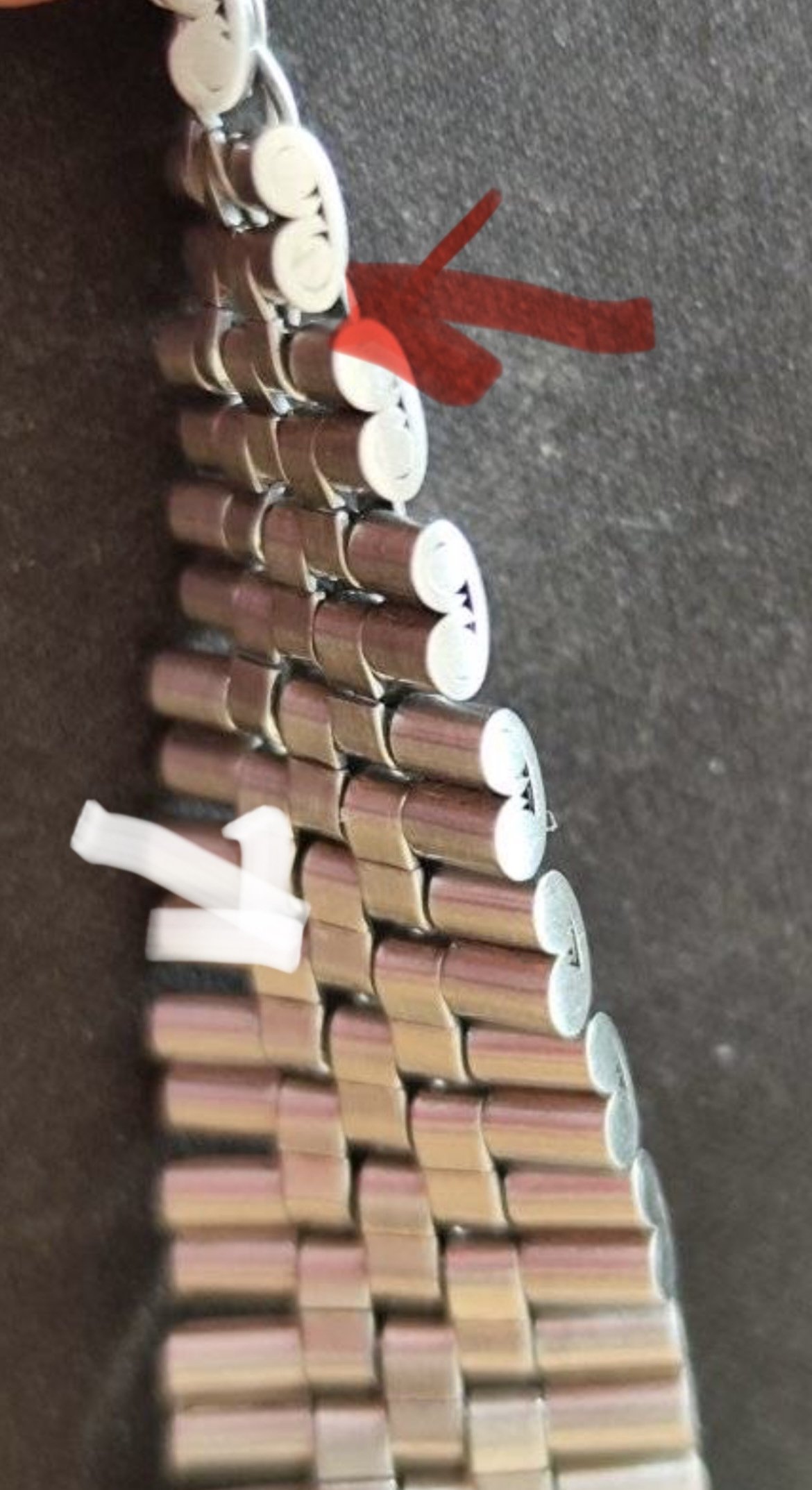 If you look at your pic, the ones closer to the lugs are flat and never been touched- the ones closer to the clasp are curved in which implies it has been resized before.