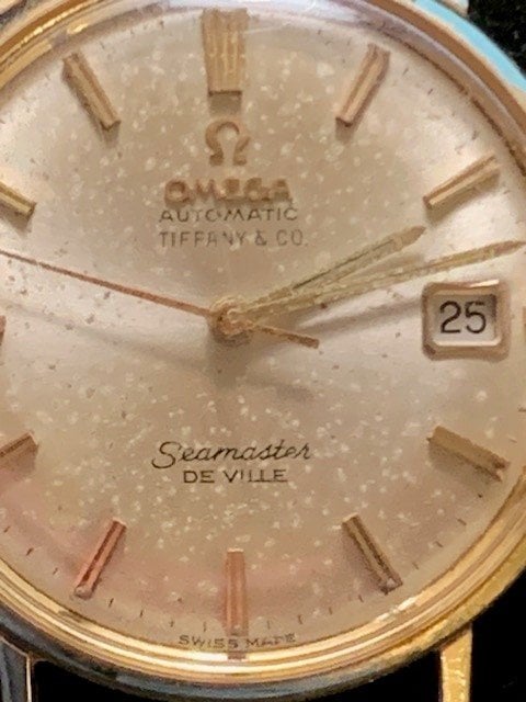 ·Hi everyone. New to this forum. I inherited from my father an Omega Seamaster De Ville with gold case. It is automatic, has a date, and is also marked Tiffany & Co. A local jeweler opened it up for me yesterday and we found hte sI've been wondering about getting it serviced -- either to wear or to sell. I see online that there is a rather wide market value for these watches -- around $1,000-$5,000?