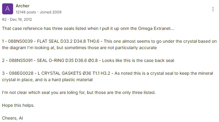 for future search results for 4.5 restoration purposes I ordered the same gaskets, crystal, etc using Archer's numbers from 12 years ago (which Rendo dug up and shared), Cousins, and TMWatchCo (which I'll post back on after I install).