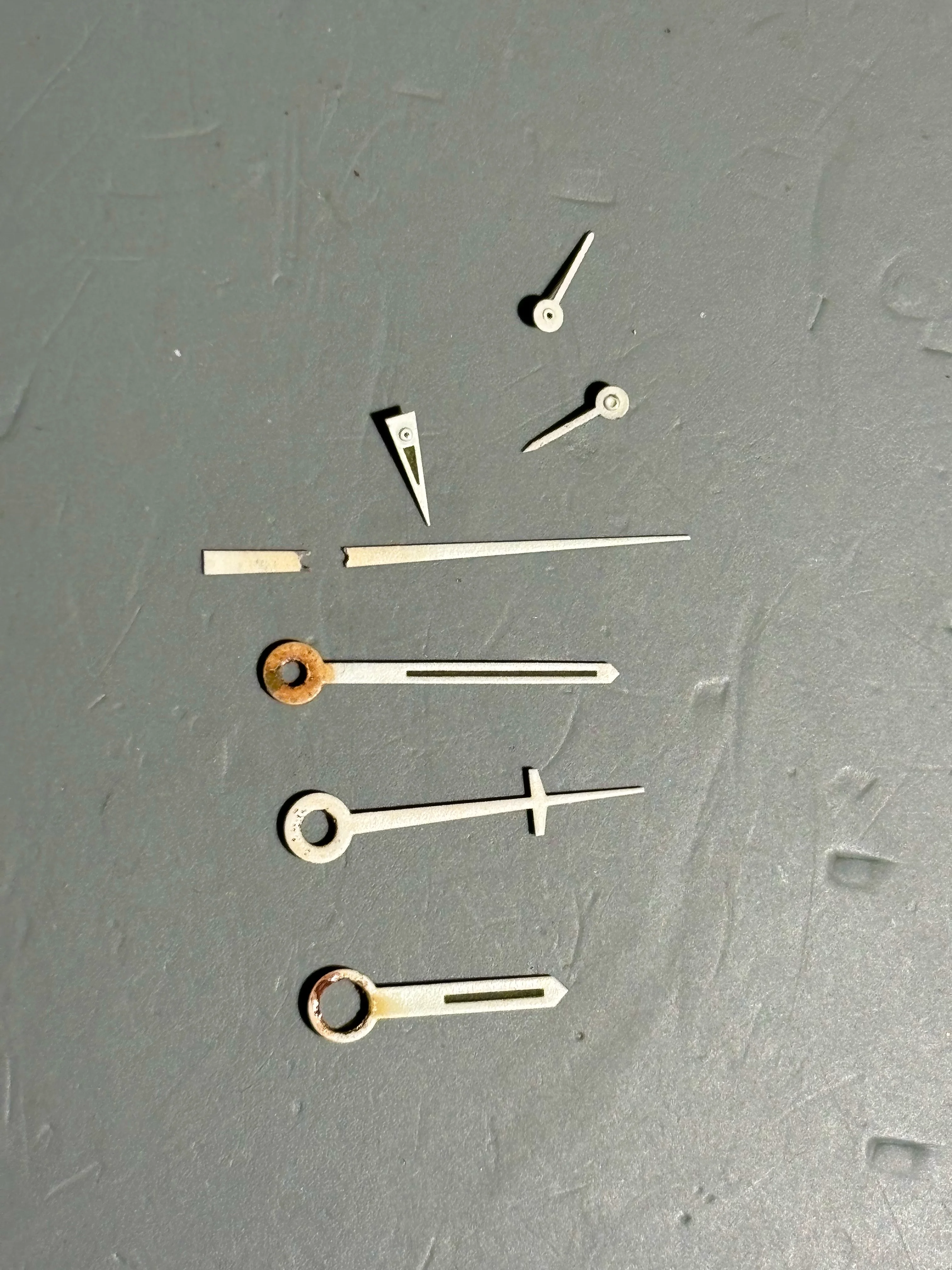 I sometimes forget I have 24 or 25 landeron movements, which is what the dial printing machine is ultimately destined for. I actually got one of the oFrie hand assortments, which did have quite a few wedge hands in them. As I recall they are all red. They are also a bit on the long side as the modern popular crap wants large blingy dials.