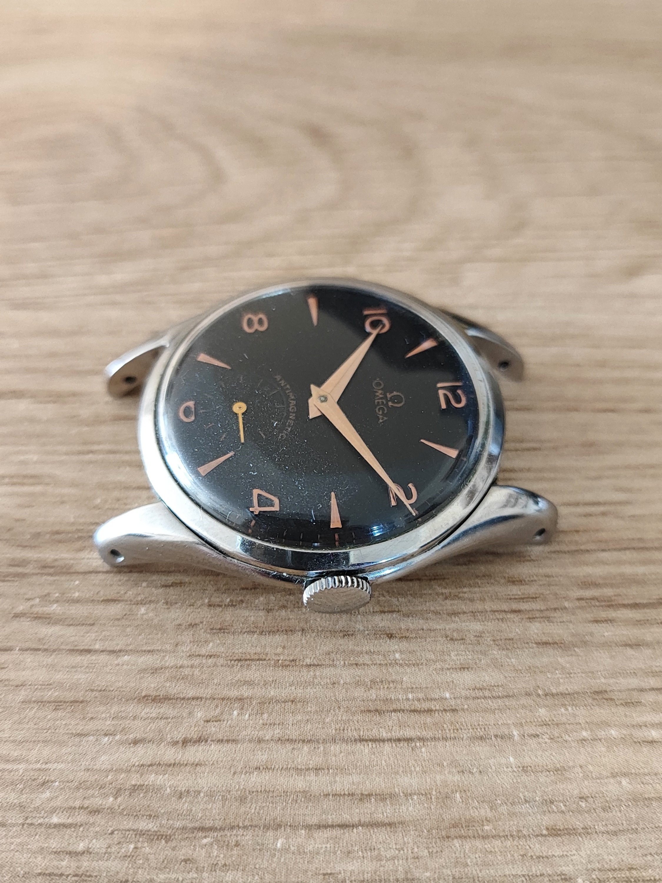 The dial: From what I've read, Omega hasn't used "Antimagnetic" on its dials. Well, the movement isn't antimagnetic anyway (that would be a 265, not the 30T2PC). In addition, the dial is too big for this watch, as much so as the "Swiss made" writing isn't even visible. It is however in there, but I didn't remove the bezel when taking photos. Any possible way of sourcing a dial that matches this particular reference?