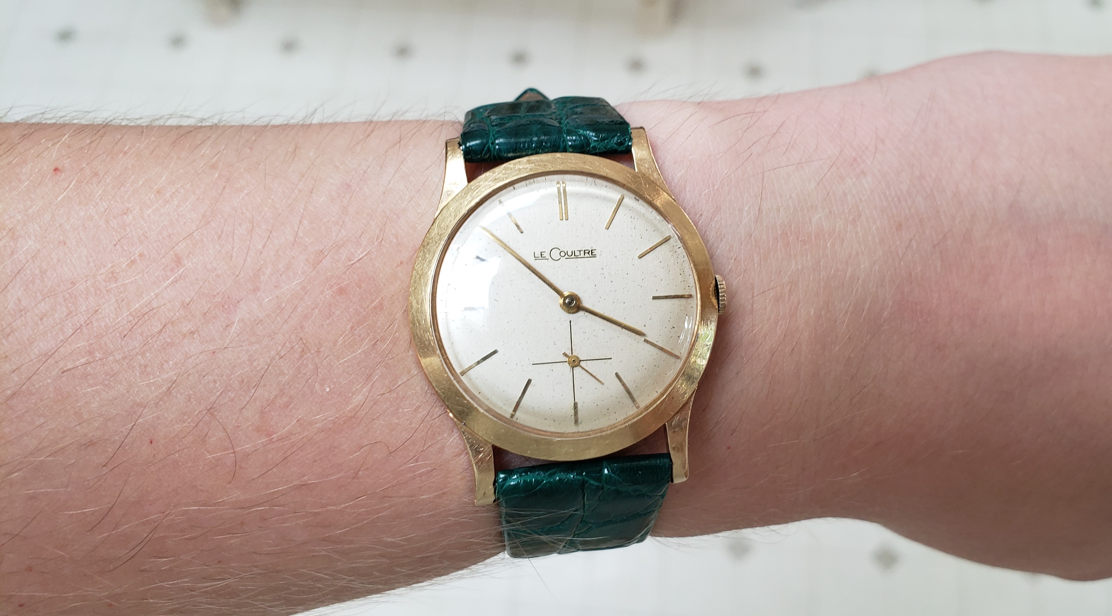 ·I found this Le Coultre in an antique store and it looked like it had seen better days. I decided to get it serviced although the dial was in poor condition. Redialed, missing indice, etc.... While the watch was in being serviced I spotted a beautiful dial on ebay on a parts movement. The seller let me have the dial for $30 and it completely transformed the watch. It looks amazing now !! The before and after photos are quite the contrast.
