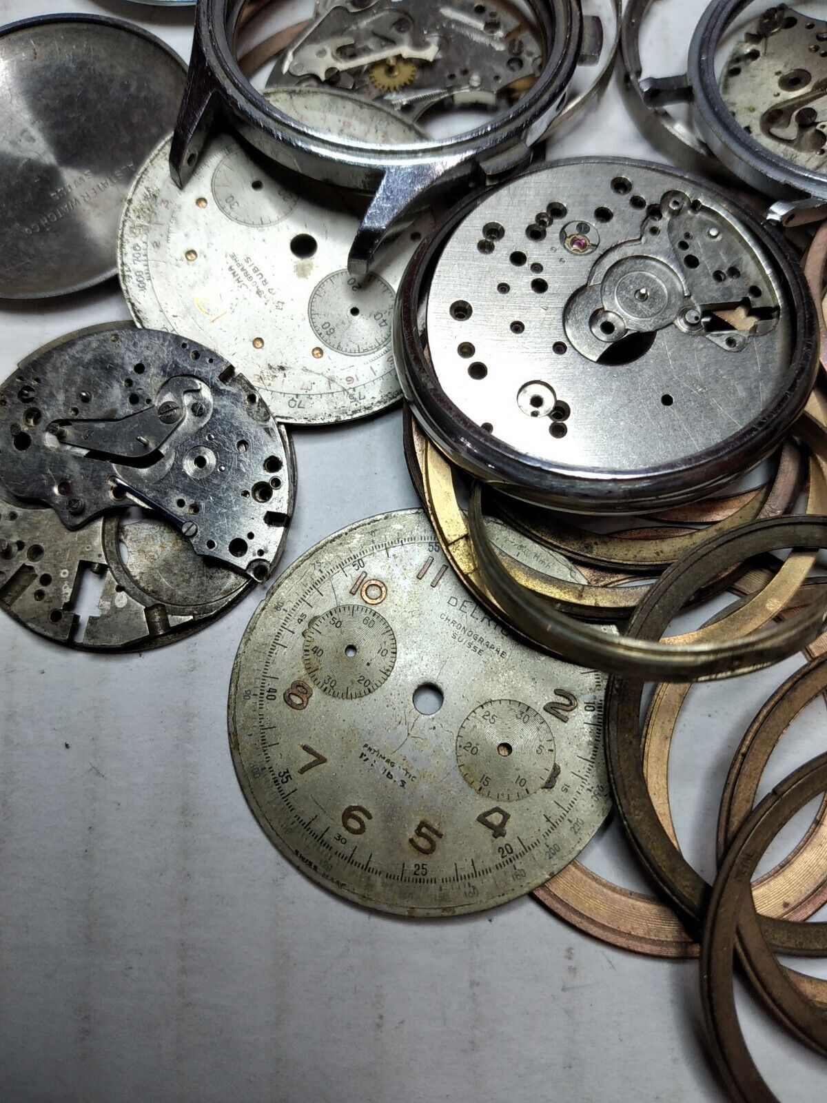 The remaining parts are for a Delbana. This watch is one of the few with a case and pushers. A third case was engraved Modera. Niether the Delbana or the Modera have dials.