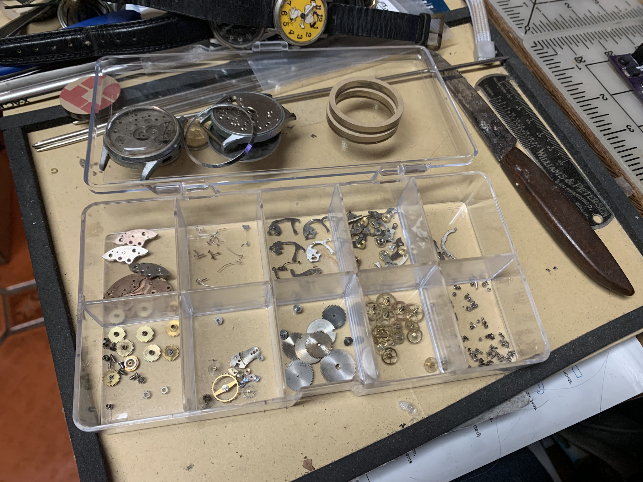 Was short on winding clutches. Bought some NOS ones. There are some in this collection as well, along with some stems.