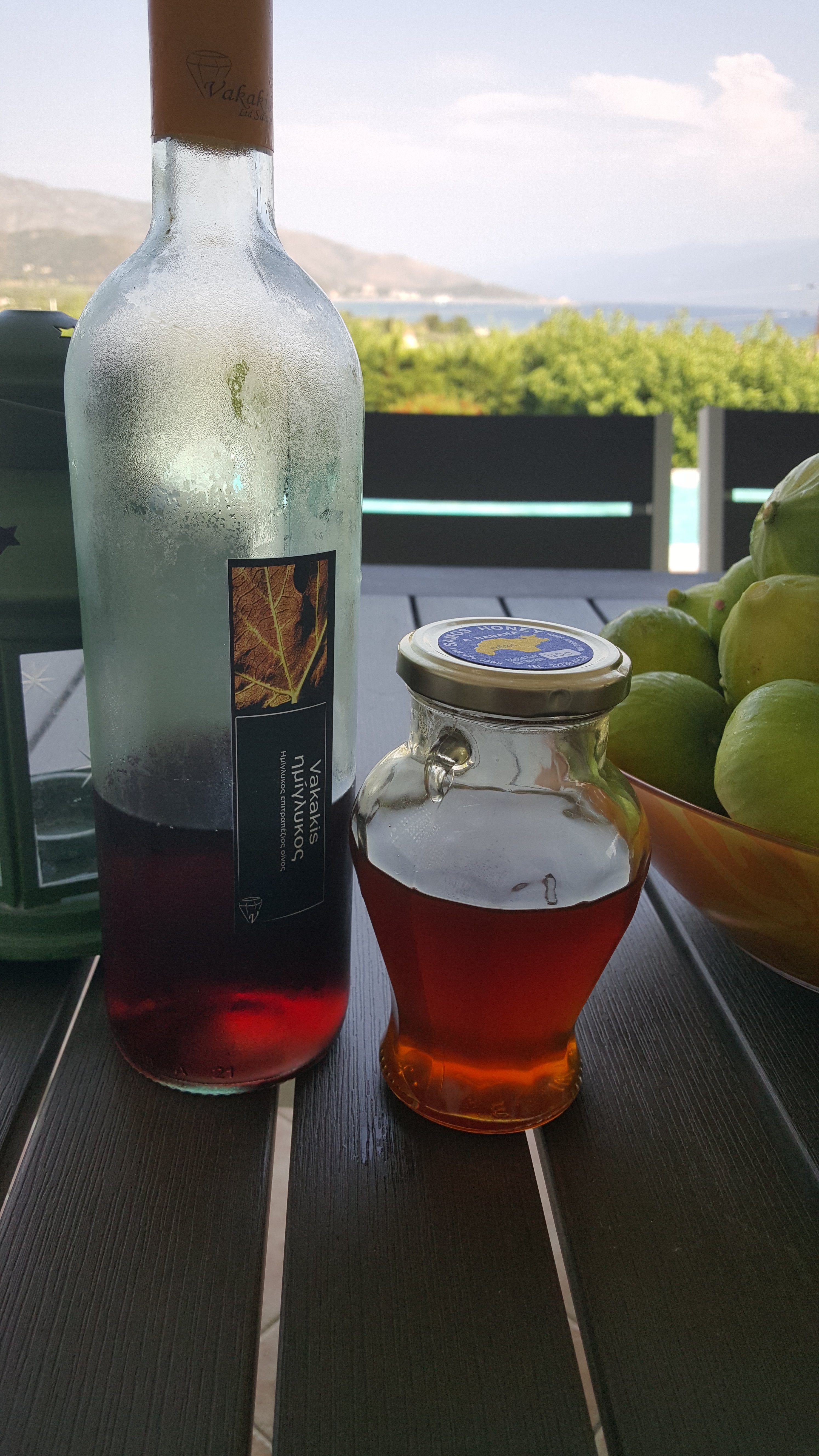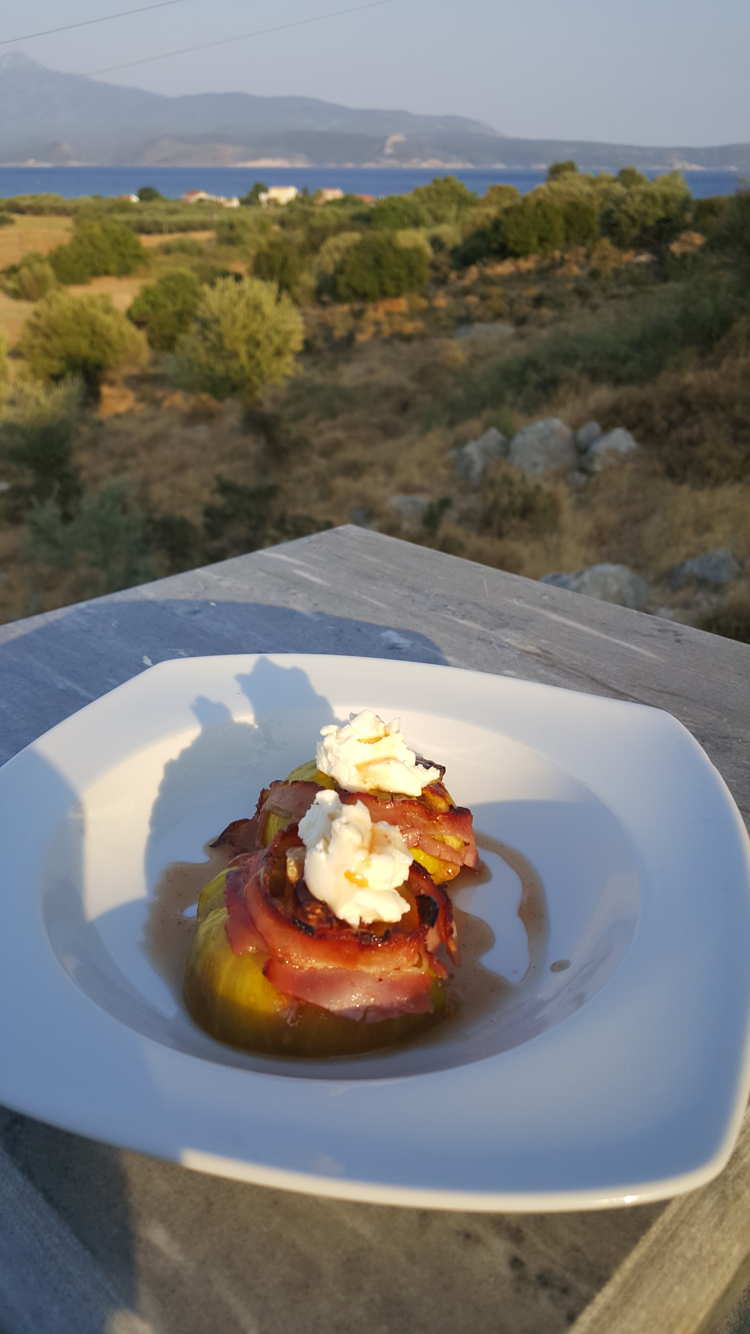 True multi culturism..Greek figs topped with Italian mascapone, enjoying a view of the Turkish coast, about to be eaten by a family comprising Dutch, English, Ivorian and Polish blood!!