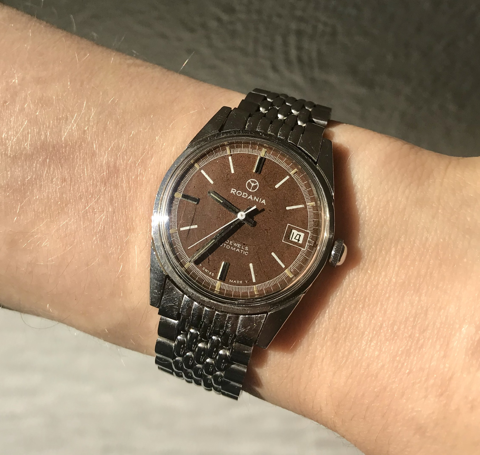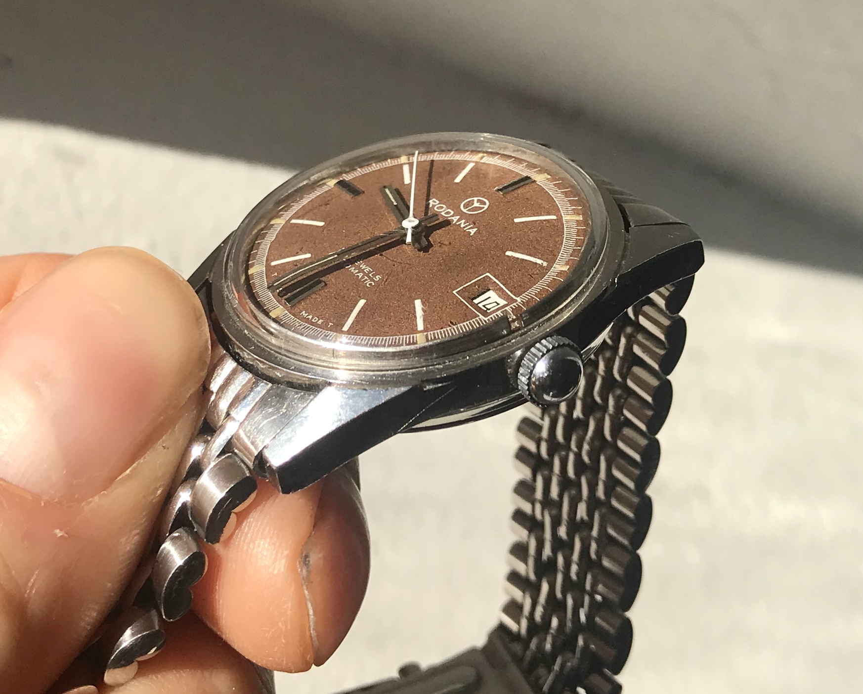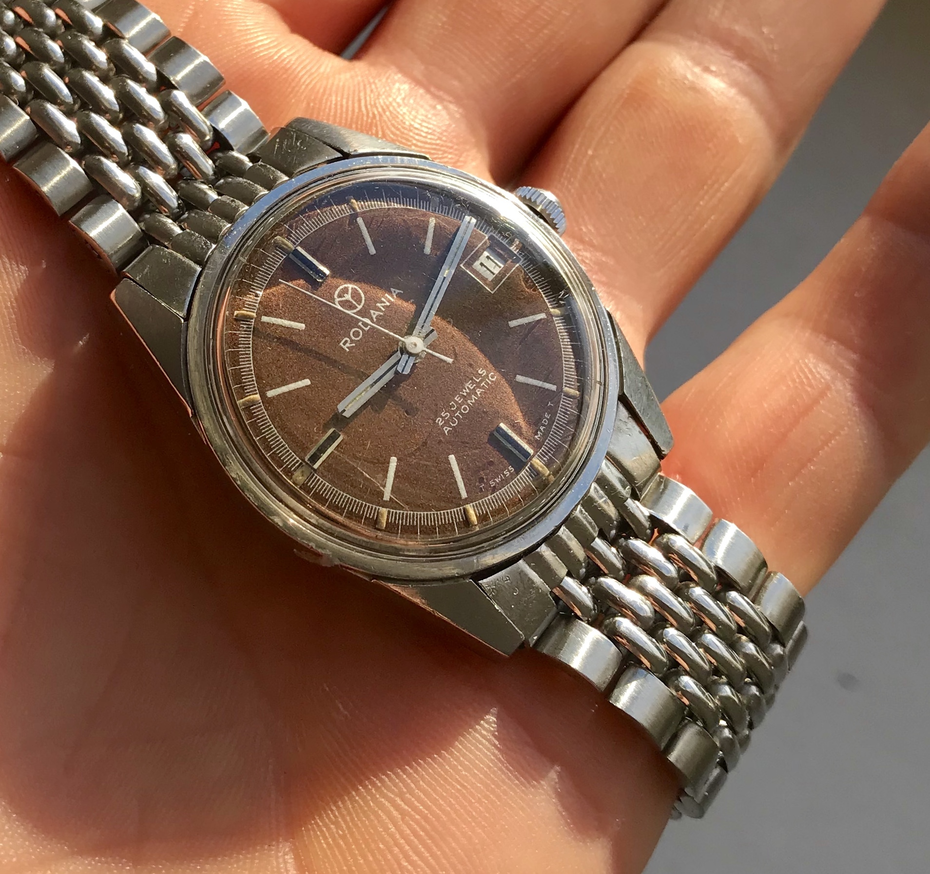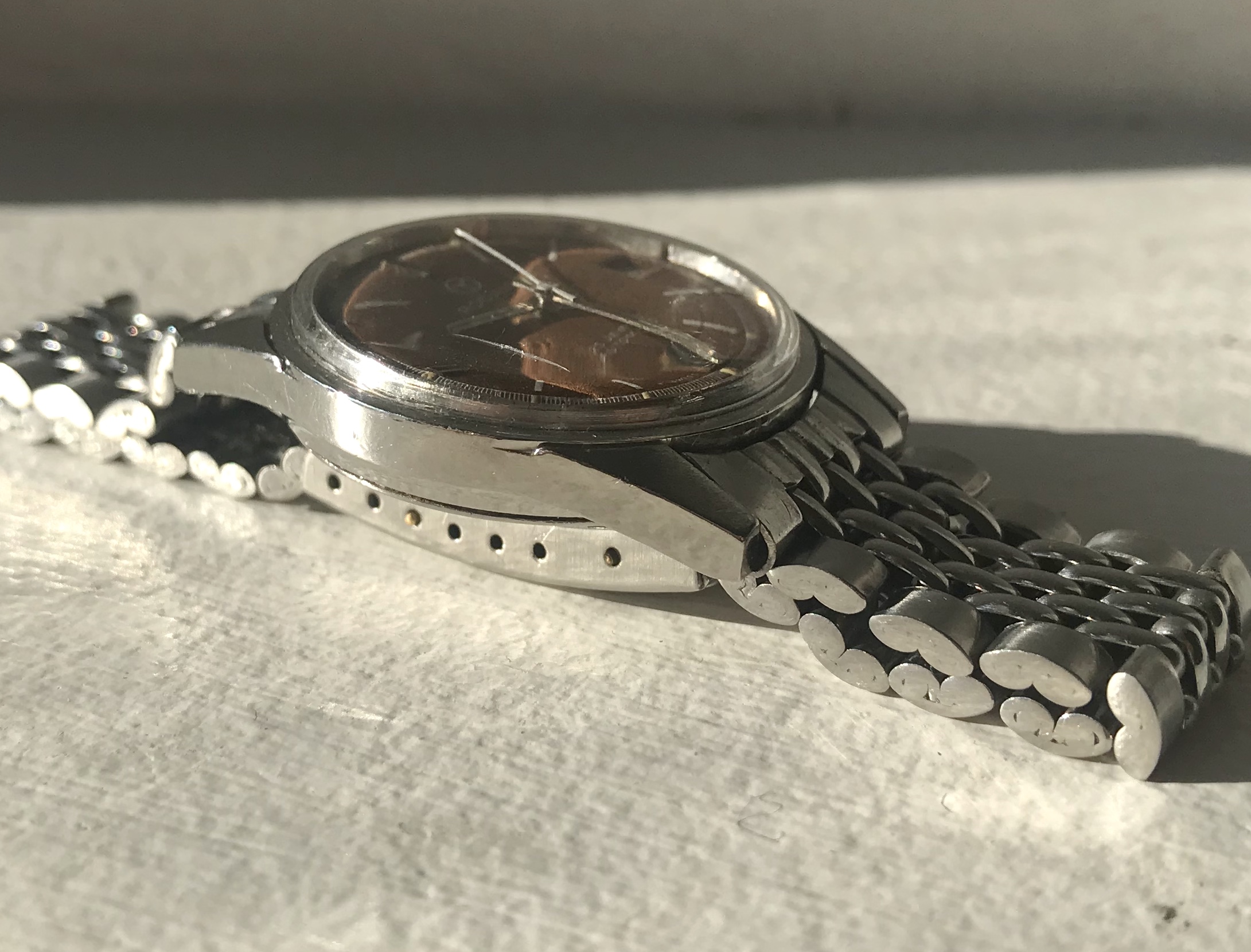 Case is in overall good condition with only small signs of wear and looks to me to be unpolished. Tropical dial which have got an warm brown colour that really pops in the sun.