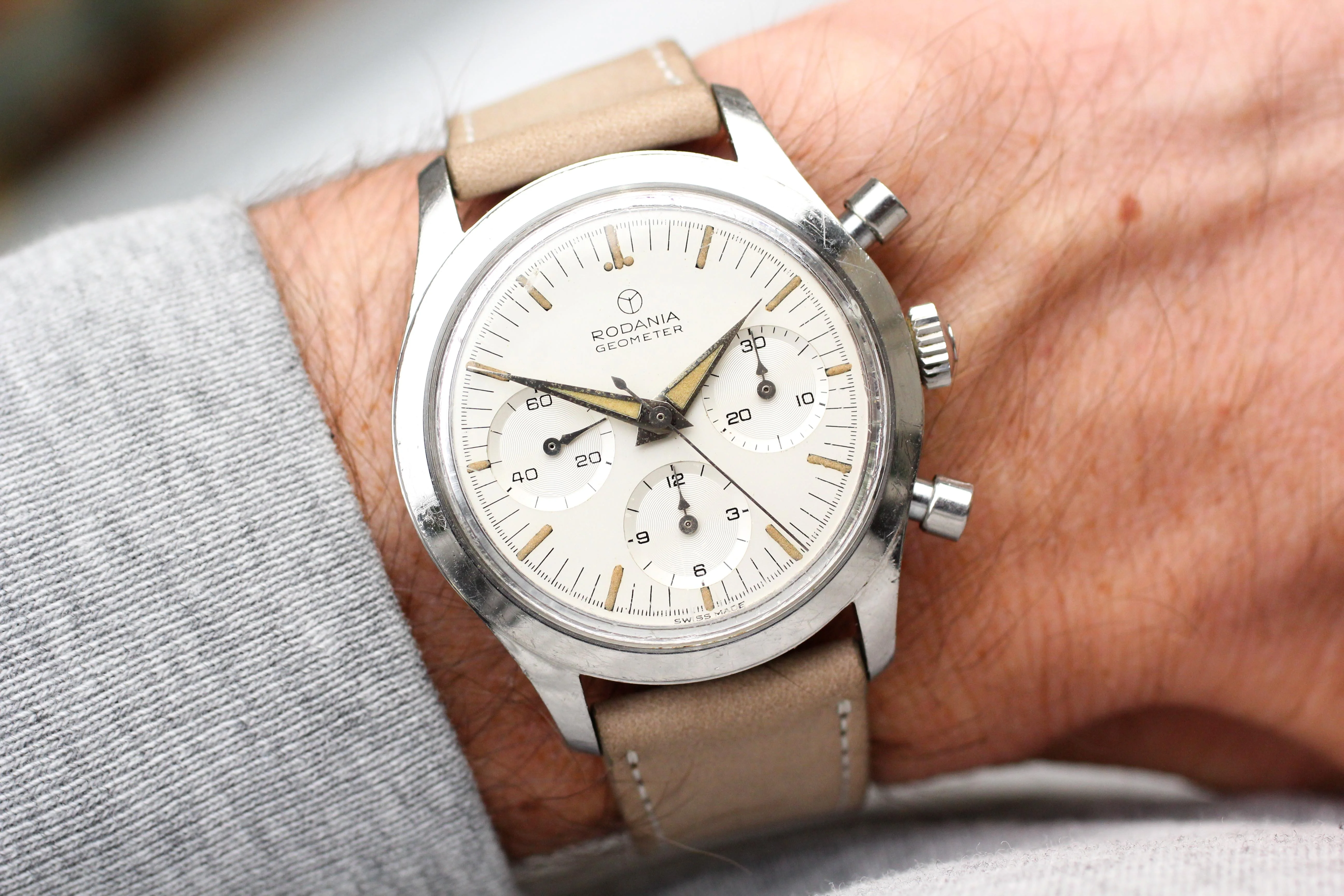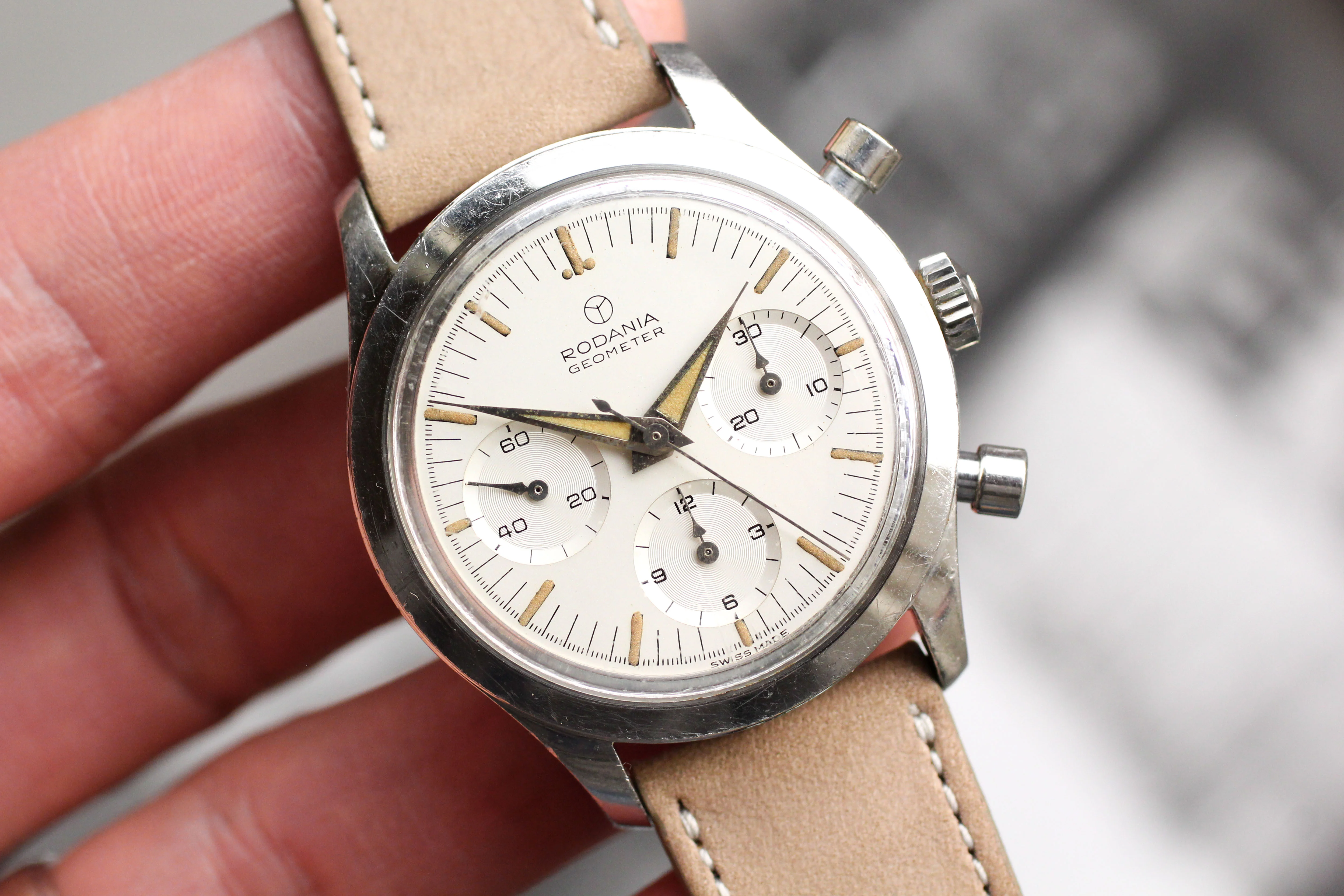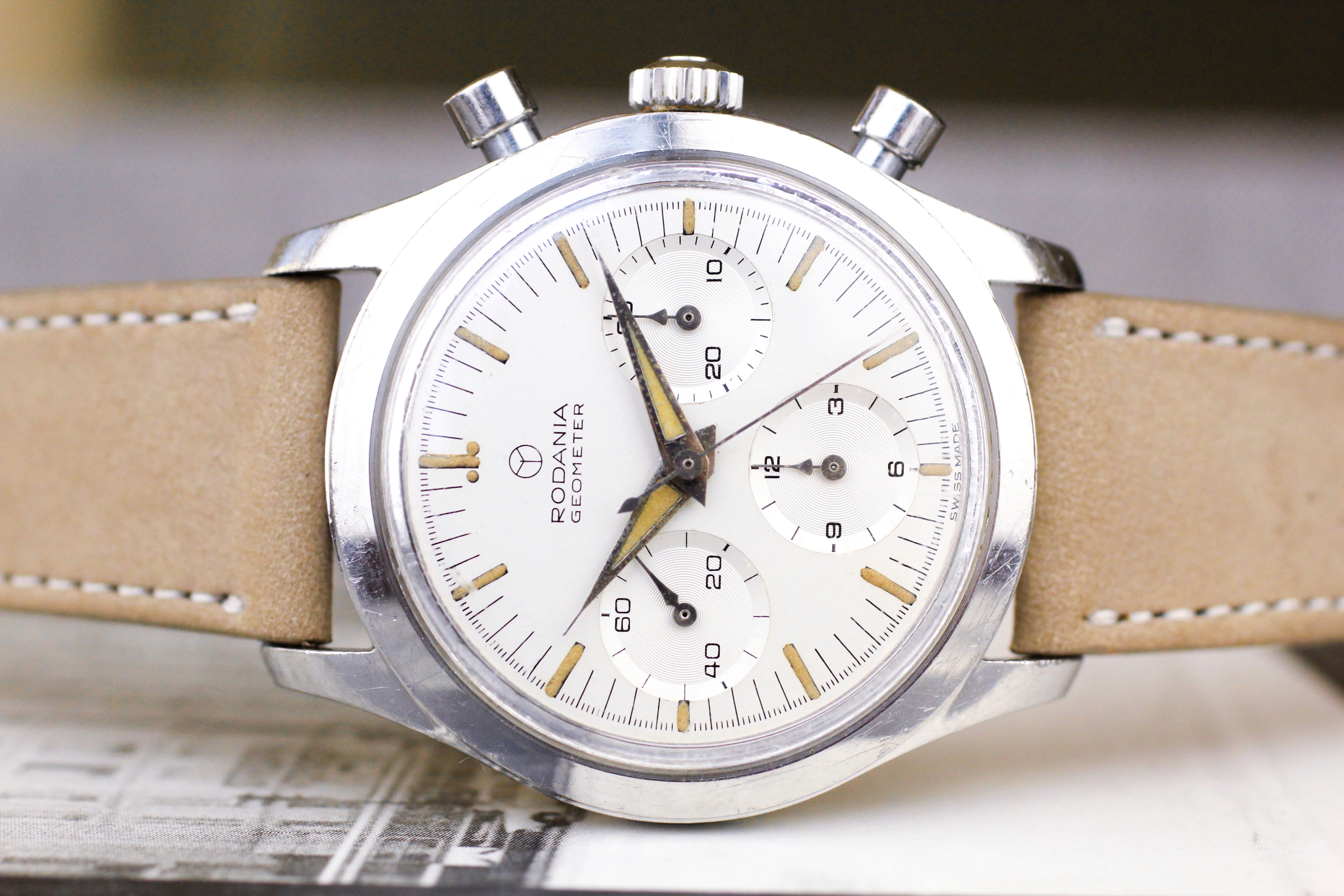 ·Up for sale is a rare, rare bird - the “Albino” Rodania Geometer. As I write this in December 2024, there have only been five white dialed Rodania Geometers to surface, with this example being the fifth. The only example that has surfaced in comparable condition was sold at Sotheby’s in 2019 (auction link here) and performed well, selling for ~$17.5K. The ensuing five years have not yielded many additional Albino-dialed Geometers, so I am thrilled to offer this gorgeous example for sale. The watch was purchased from the family of the original owner and has been preserved in excellent overall condition. The buyer of this watch will own not only one of the rarest Geometers, but also the best one that has surfaced to-date. See below for the full condition report: