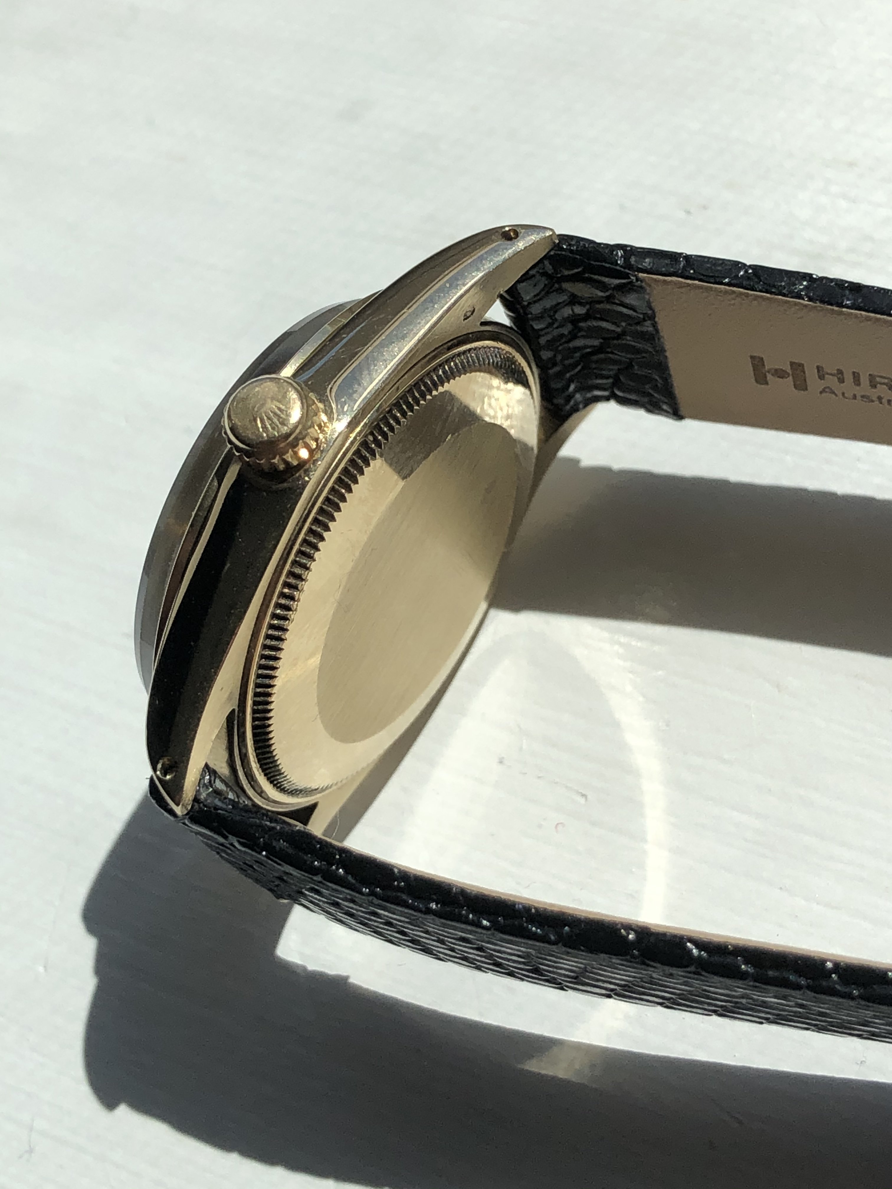 ·Up for grabs is an amazing unpolished condition solid gold Rolex. Super sharp lugs that are scratch free and so is the bezel. Some spotting on dial, but gives it character. 34mm without crown. Runs well but not serviced in my possession (previous owner claimed recent service). Ref 1002.