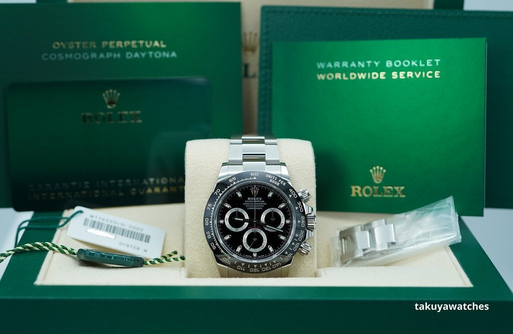 Complete Packages/Set (double boxes, Rolex Green Tag, White Serial Numbers Tag), & Complete Manuals/Papers with Warranty Card has Rolex AD’s Name Printed, Named & Dated 08.2023. The Watch still has Plenty of Factory Warranty Left.