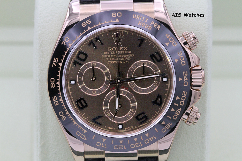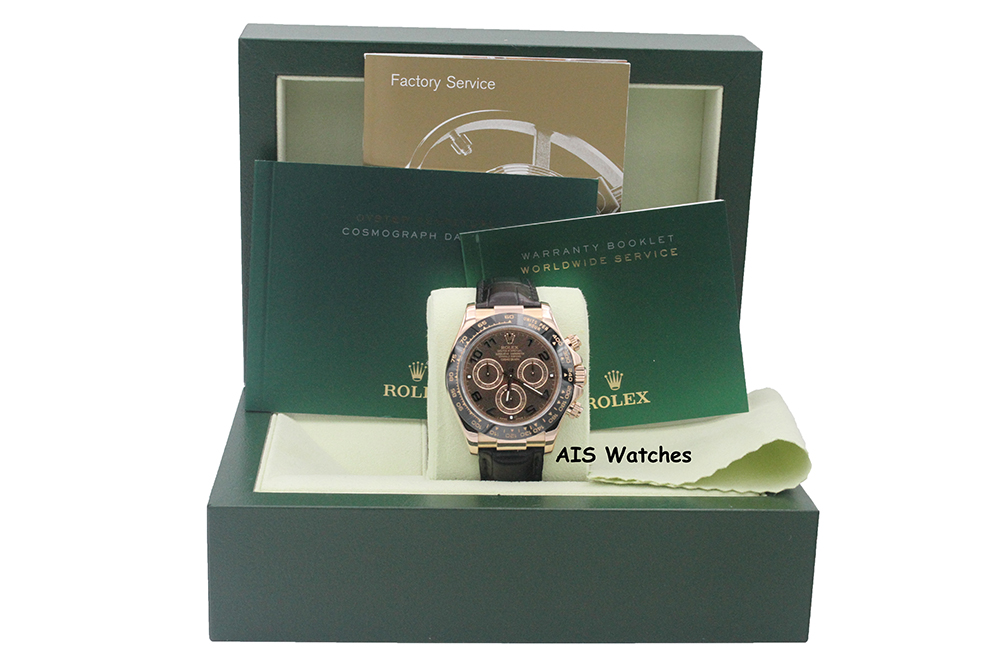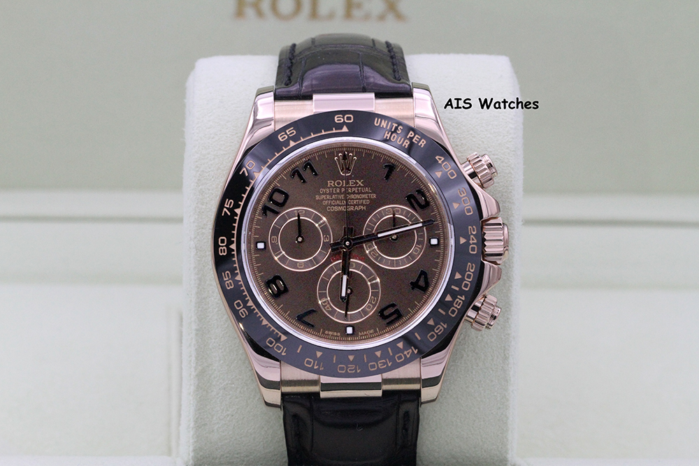 ** Rolex 116515 Daytona Ceramic Cosmograph 18K Rose Gold on Alligator Leather with Chocolate Arabic Dial G Serial