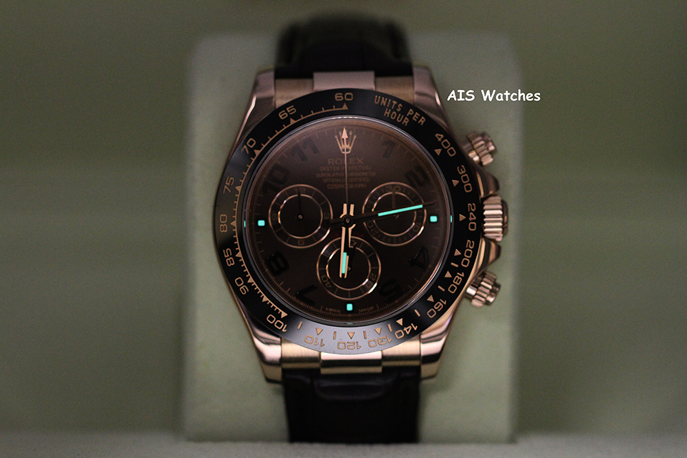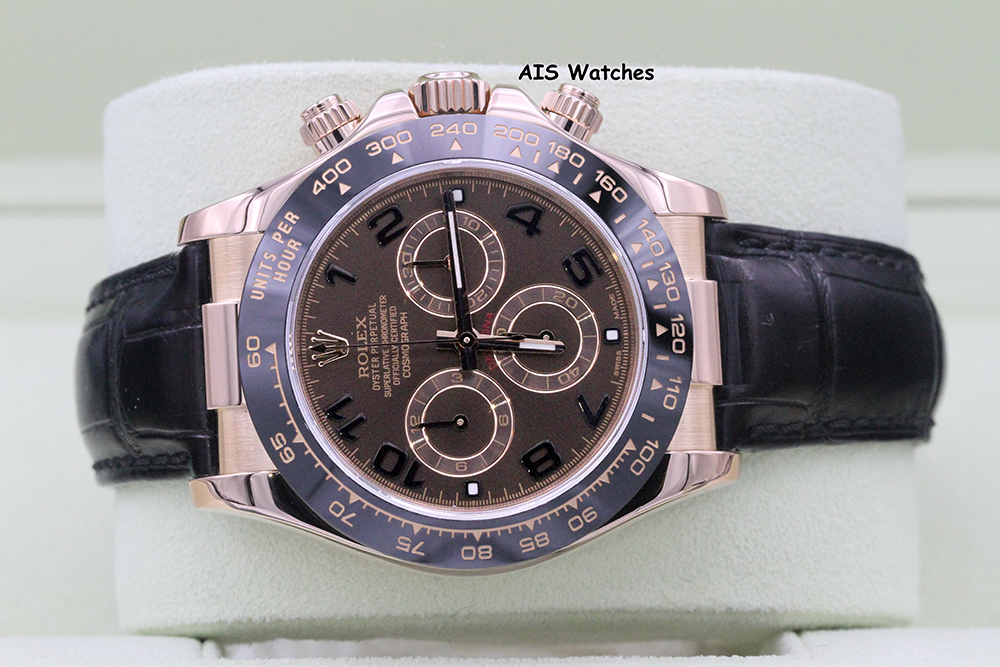 ** Rolex 116515 Daytona Ceramic Cosmograph 18K Rose Gold on Alligator Leather with Chocolate Arabic Dial G Serial