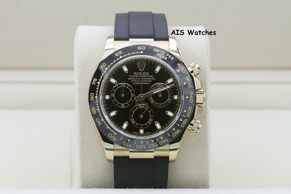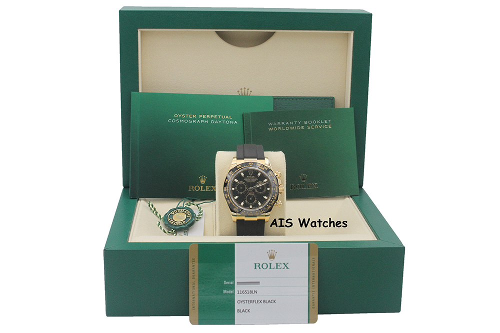 ** Rolex 116518 Daytona Ceramic Cosmograph 18K Yellow Gold Black Dial on Oysterflex