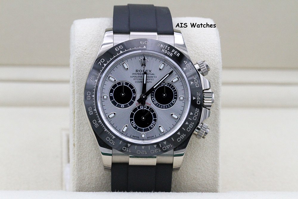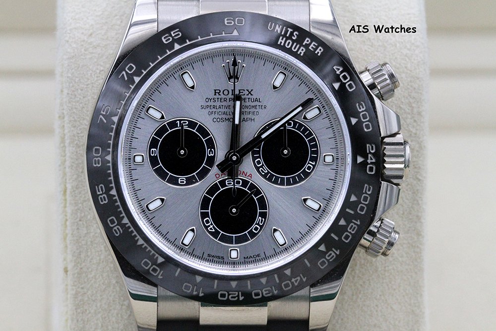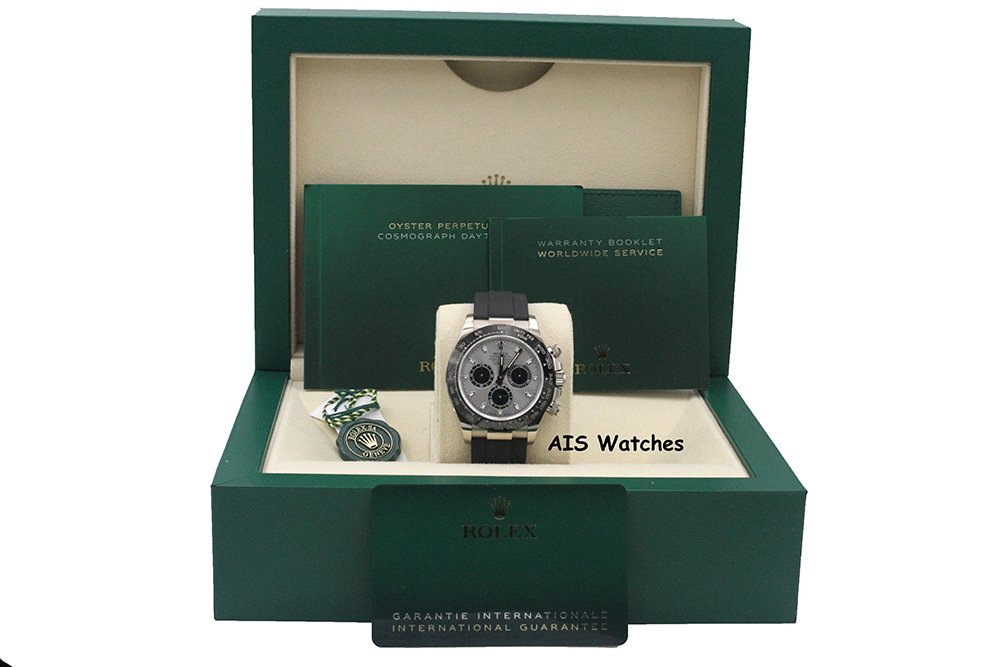 Up for sale is a Rolex 116519 Daytona Ceramic Cosmograph 18K White Gold with Steel Dial on OysterFlex Box & Papers. The timepiece is in excellent condition.